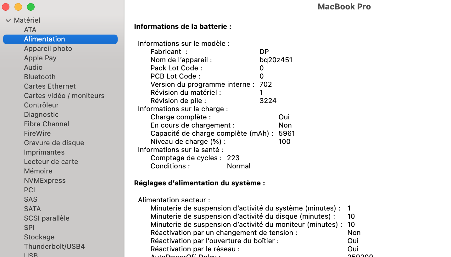 Cycles batterie : 223