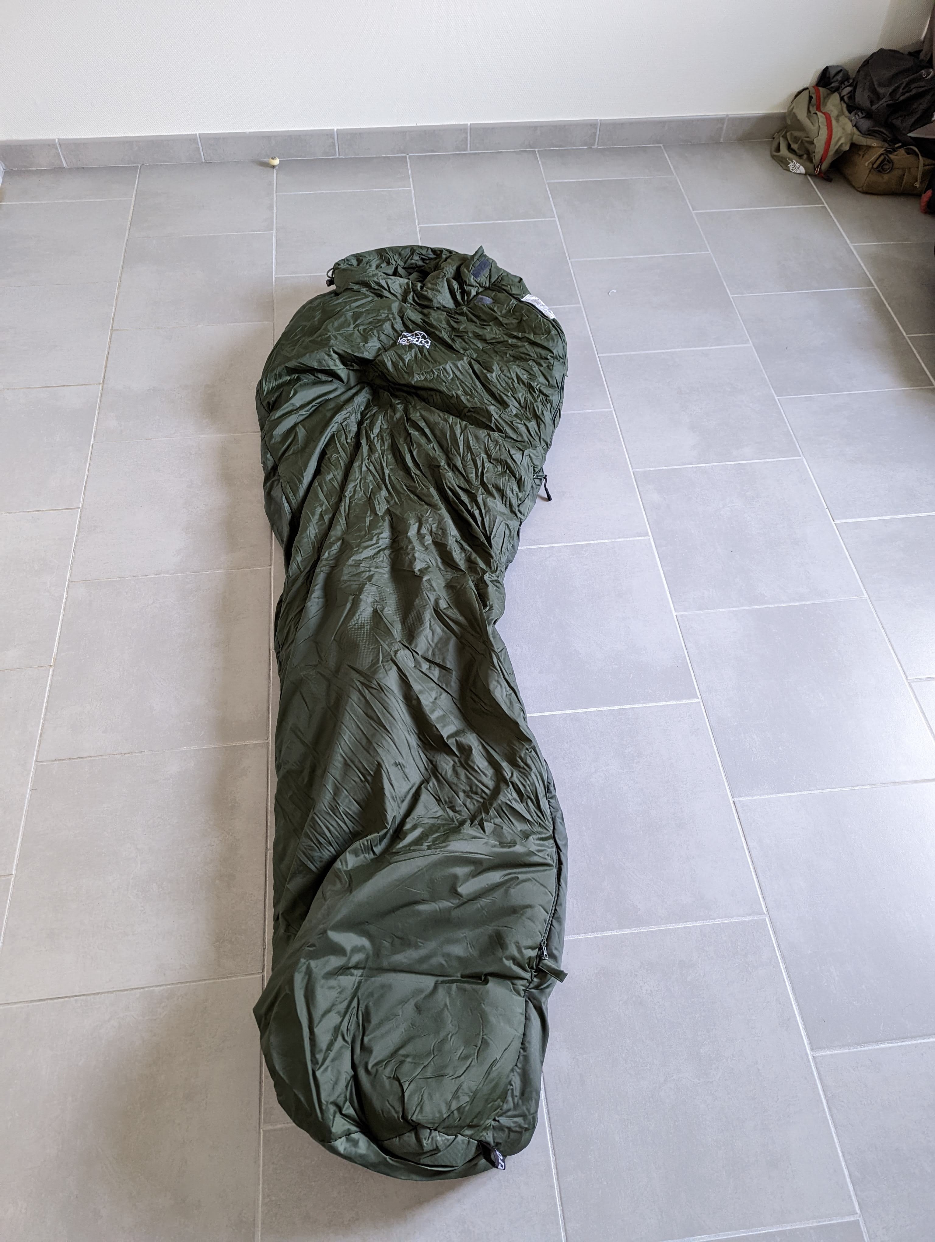 Sac à dos TNF vendu, il reste le sac de couchage type militaire.