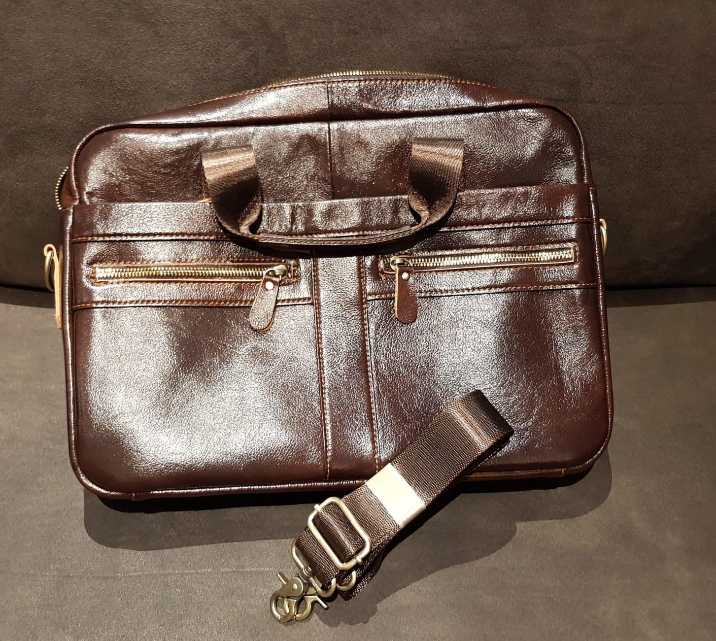 Sacoche en cuir, couleur marron pour ordinateur 15.6".