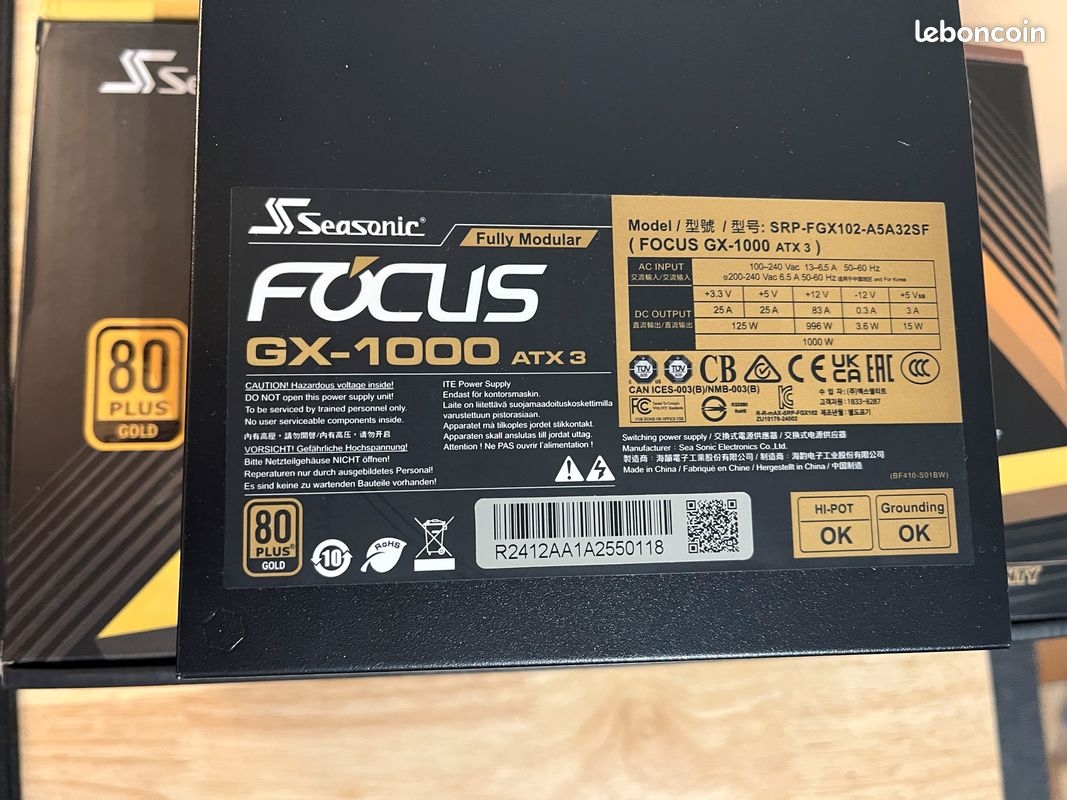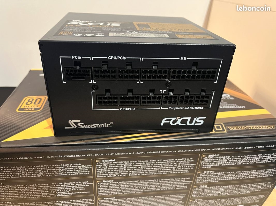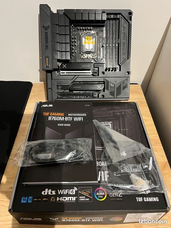 Vends lot comprenant. 250€ in Alim Seasonic Focus Gx-1000 ATX 3.0 / Pcie Gen5. Carte mère μATX Asus TUF Gaming B760M-BTF Wifi. Alimentation vendue dans sa boite avec tous les câbles Carte mère vendue dans sa boite avec tous les accessoires et la facture de septembre 2025 En vente sur d'autres support Envoi par Mondial Relay, après réception du paiement Paypal