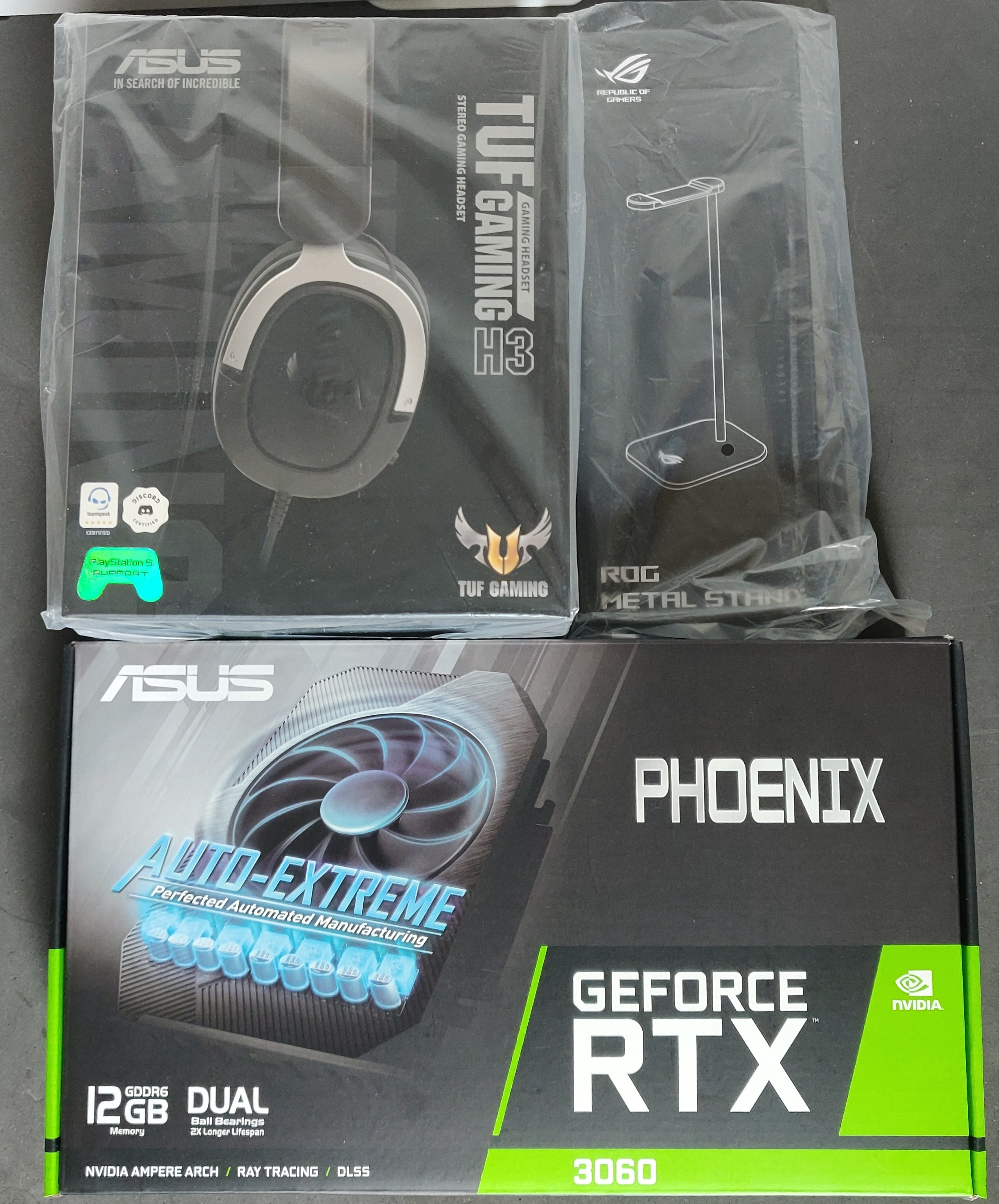 495€400€ out2 Lots neuves avec Un casque Asus TUF gaming H3 + ROG metal stand + RTX 3060 12GB