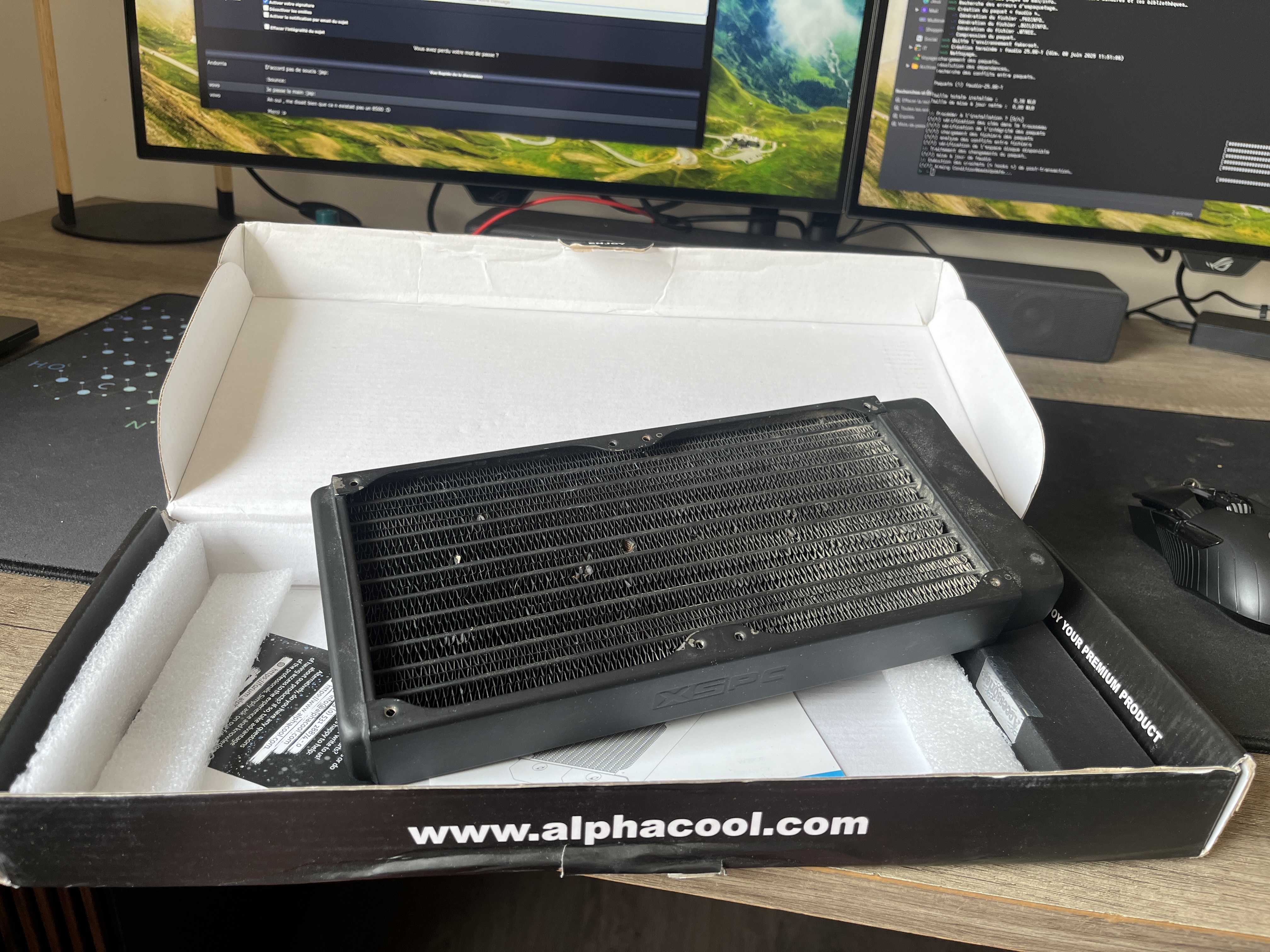 - radiateur 240mm super slim 17mm, passe dans le boitier Ncase m1 sur le bas avec des ventilos slim
