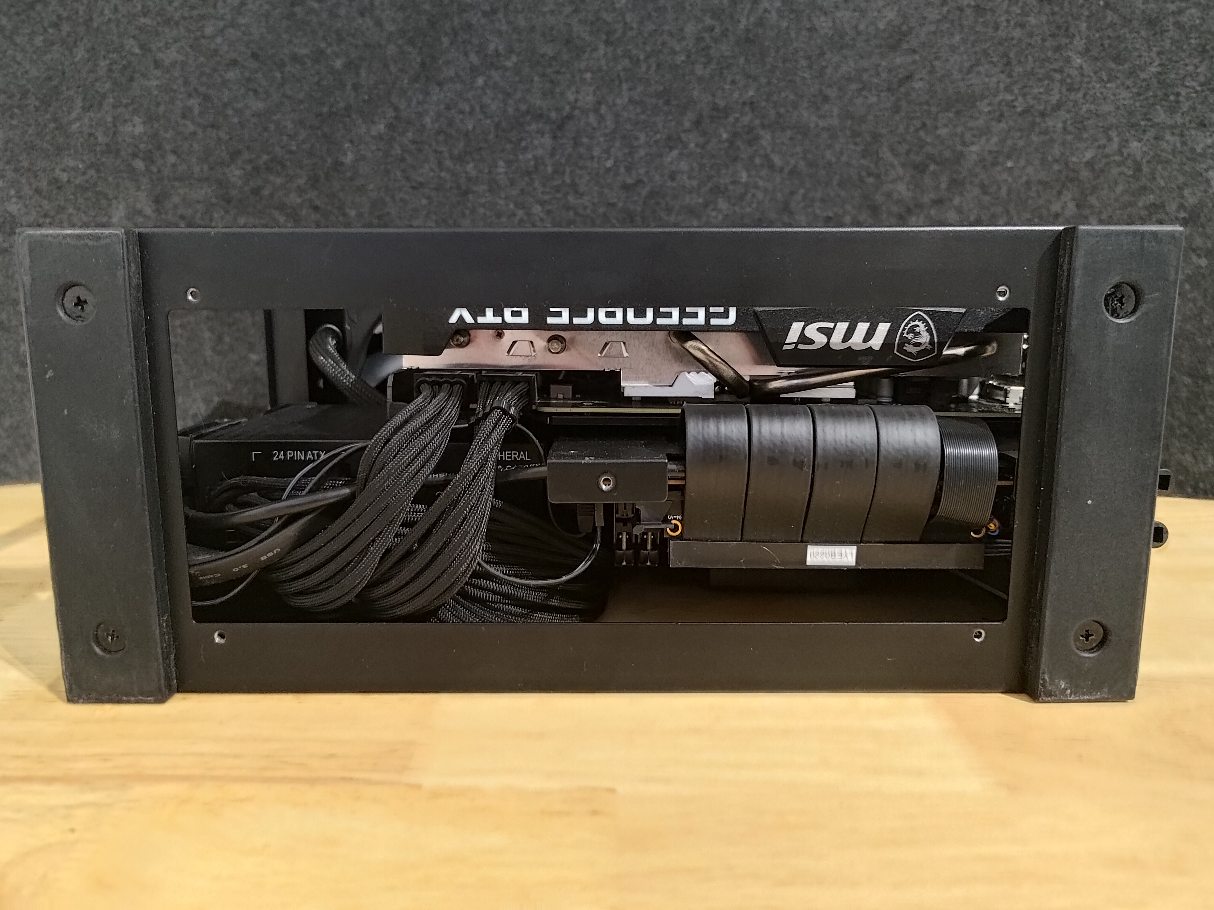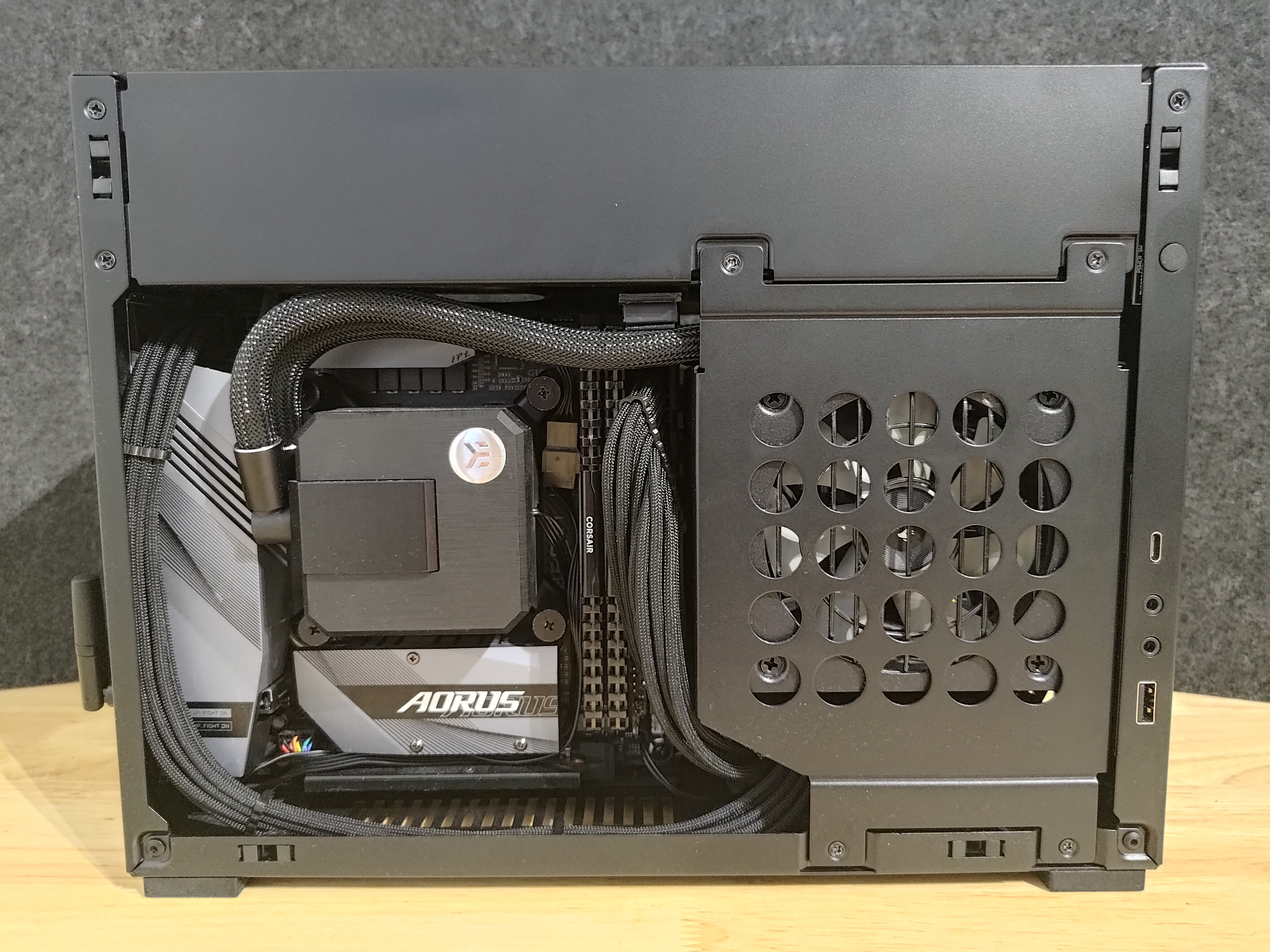 - Boitier Lian-Li Dan Case A4h2o de couleur noir avec le riser PCIe Gen 4. https://lian-li.com/fr/product/a4h2o/ 1 pico de cassé sur la paroi du dessus. Il reste 4 picos sur 5 donc la paroi du dessus tiens toujours très bien