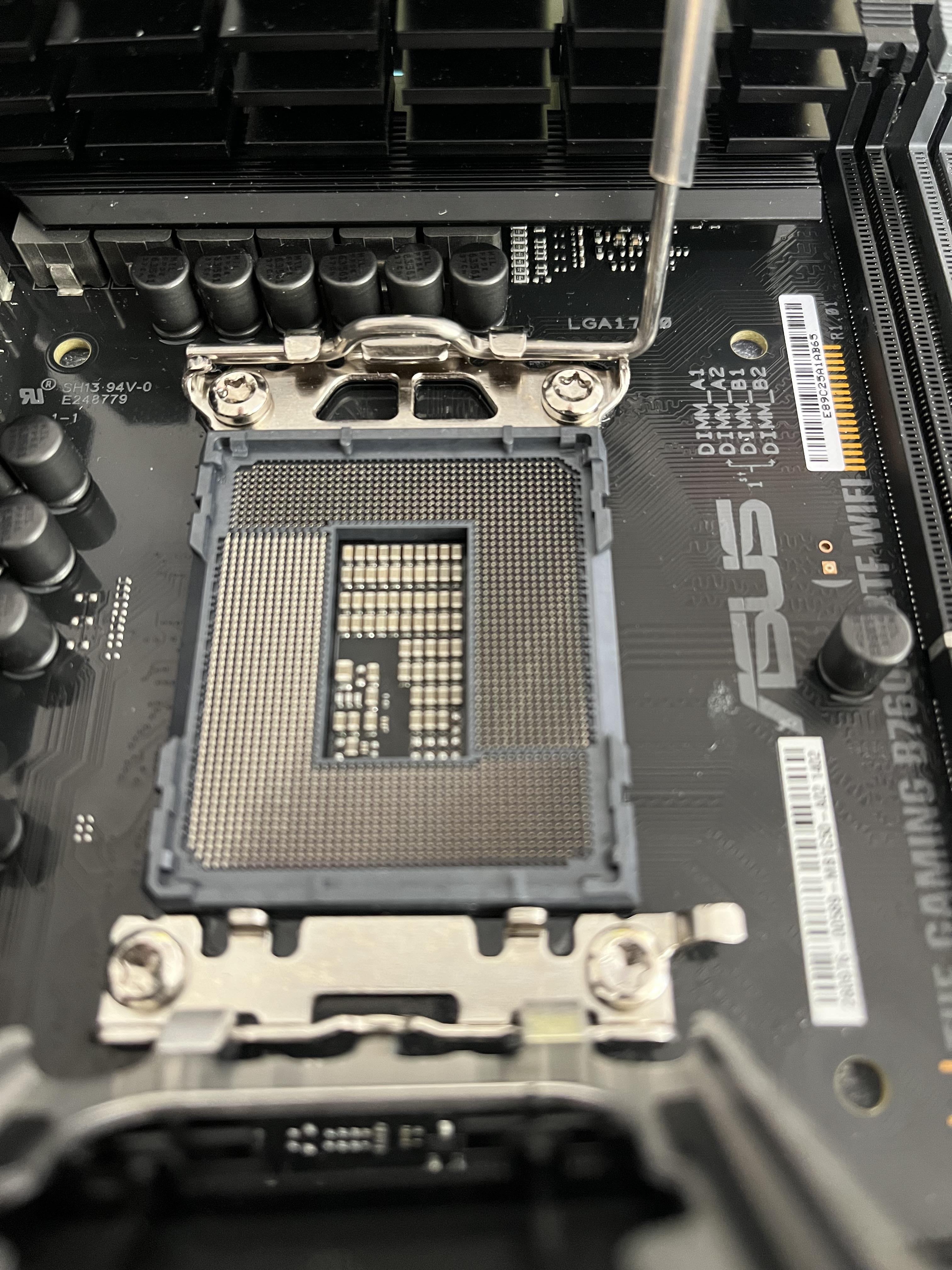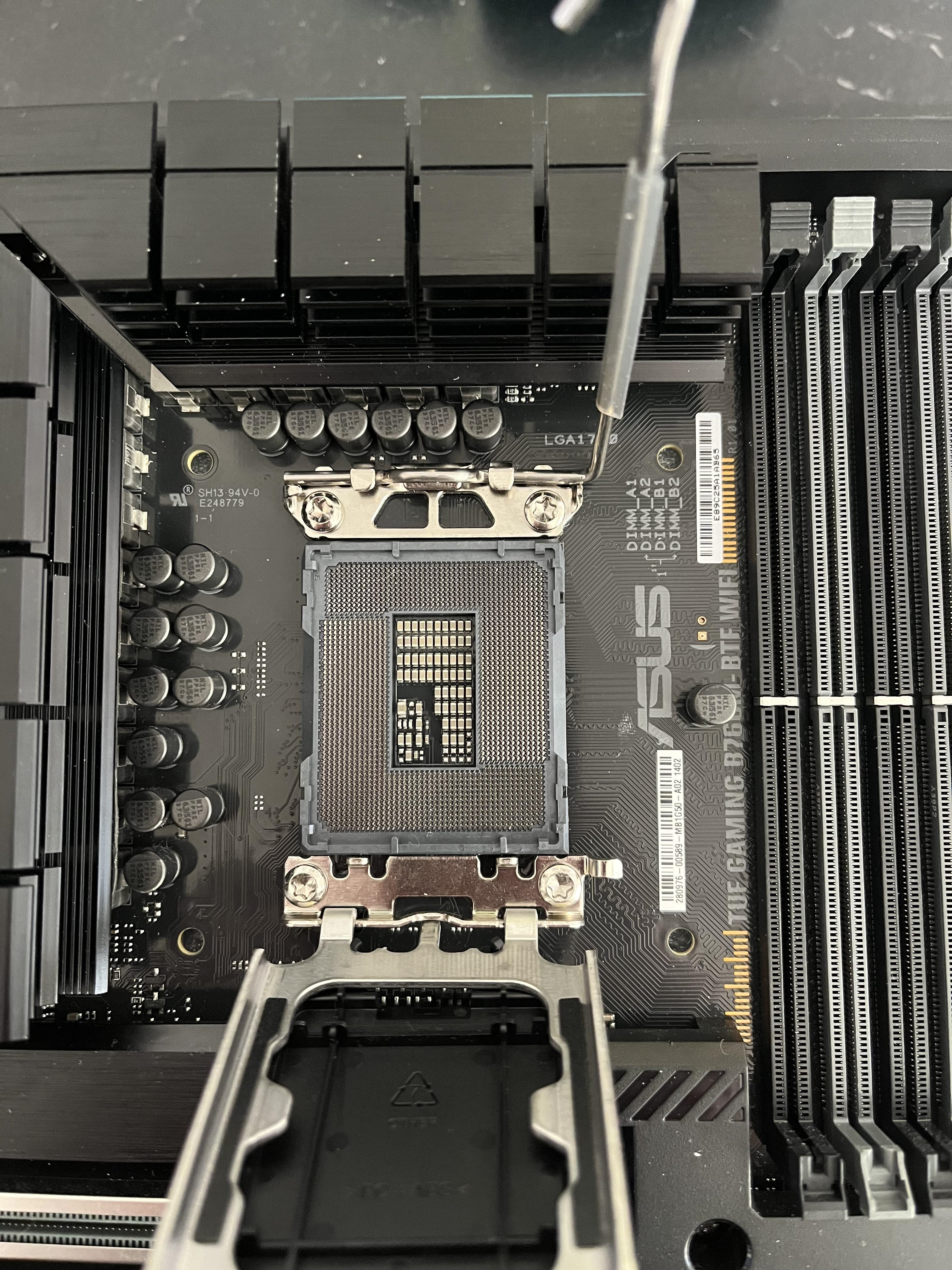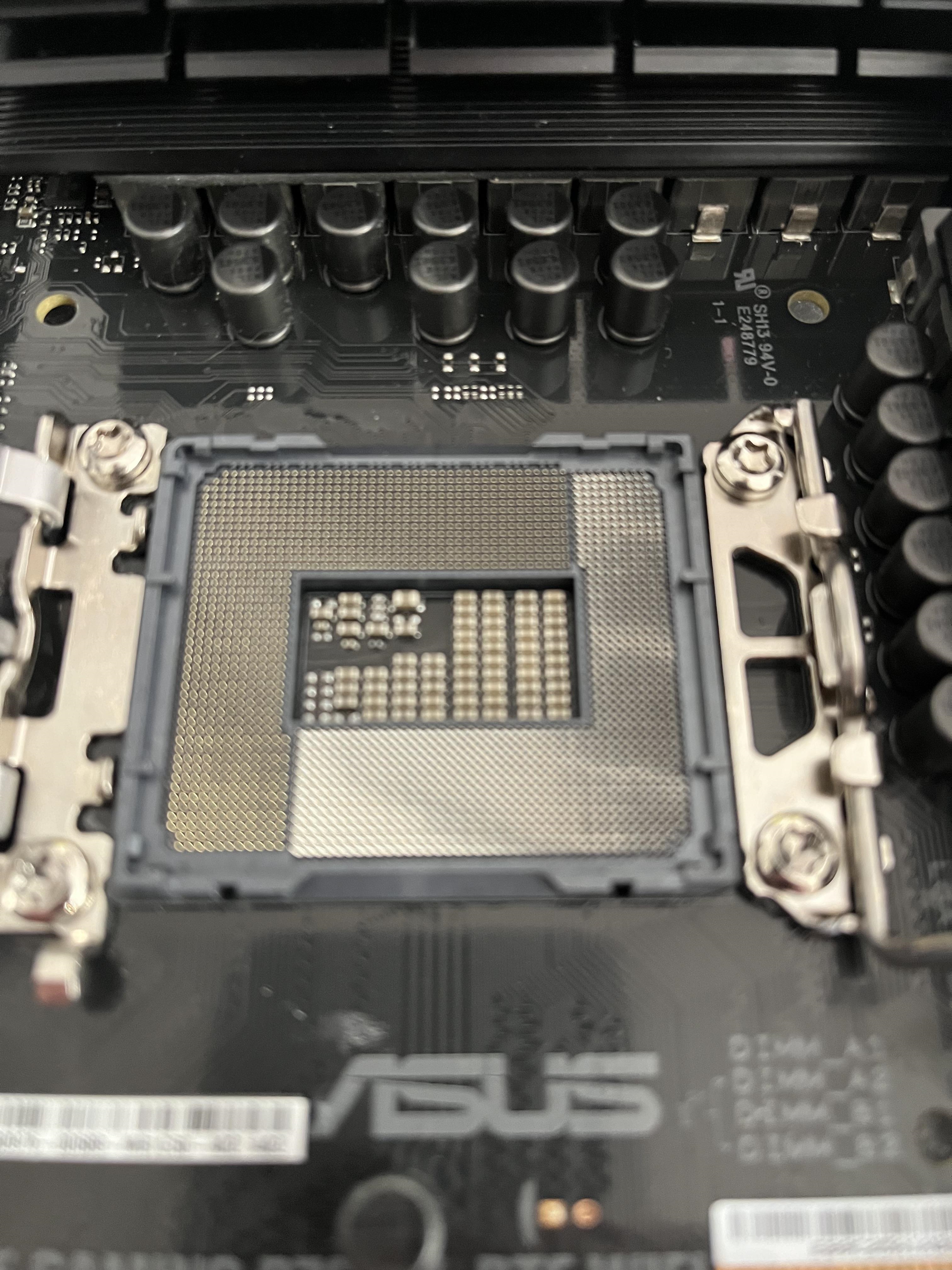 Peux tu faire d'autres photos du socket ( carte mère droite face à toi , carte mère à 90° face à toi et carte mère à 90° face à toi avec inclinaison de l'appareil ) car sur celle que tu as mis on dirait que c'est voilé là où j'ai cerclé de rouge :