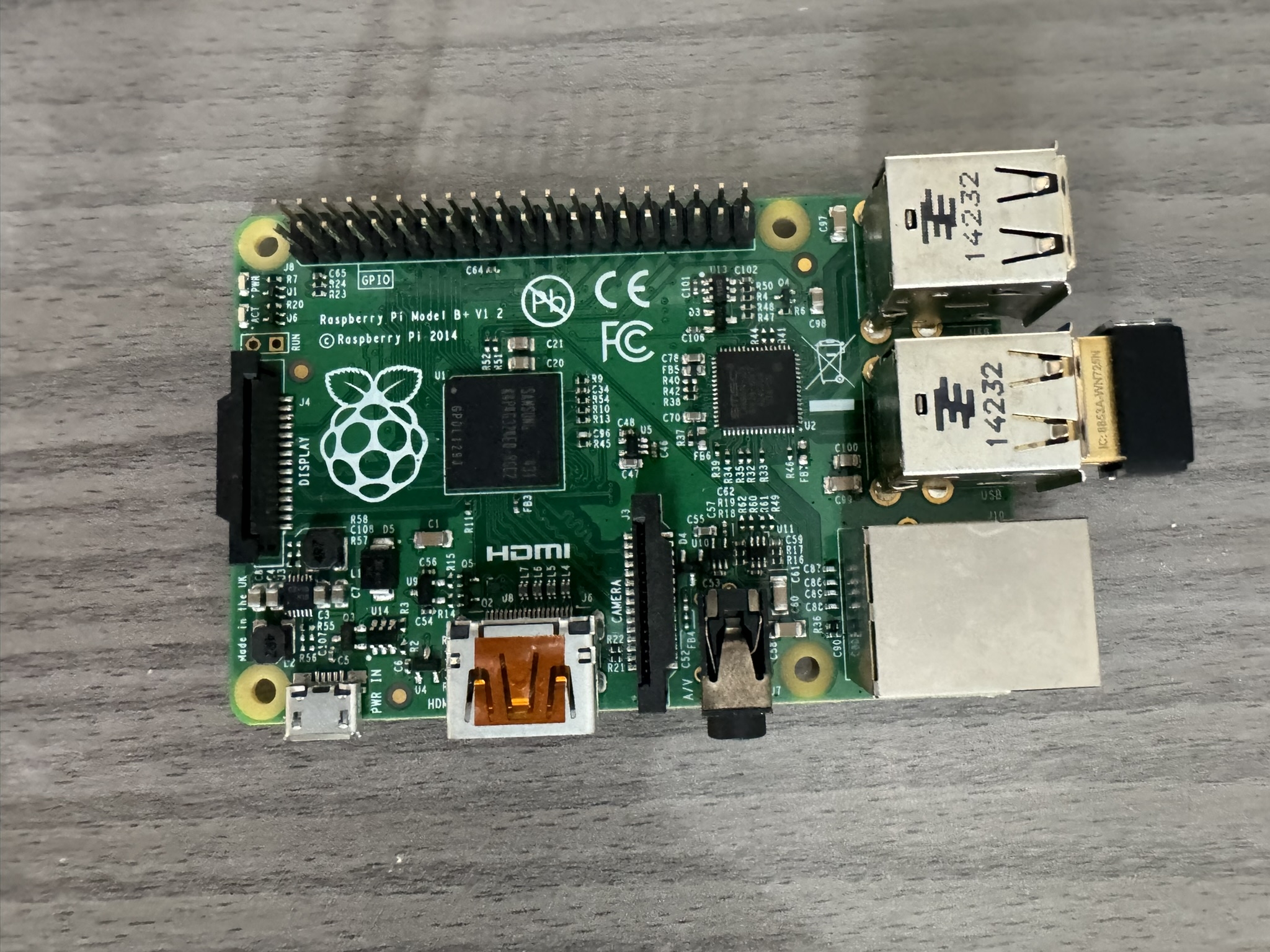 Par contre, mon Pi 1 est la première version 2011, avec seulement deux ports USB et le slot SD d'une carte normale (pas micro) alors que le tien est 2014
