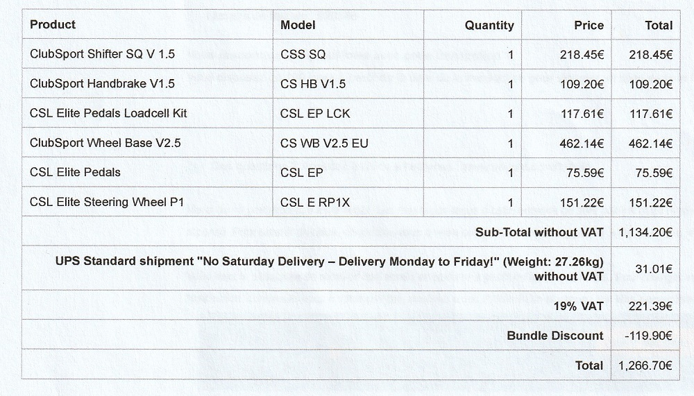 Hello, je me remets au simracing en VR et le setup fanatec c'était mon rêve y a 3 ans, 650e avec frais de port inclus 670 frais de port inclus (plus raisonnable) en passant par shop2shop (chronopost, jamais eu de soucis et livraison en 24h) ça te semble correct ?