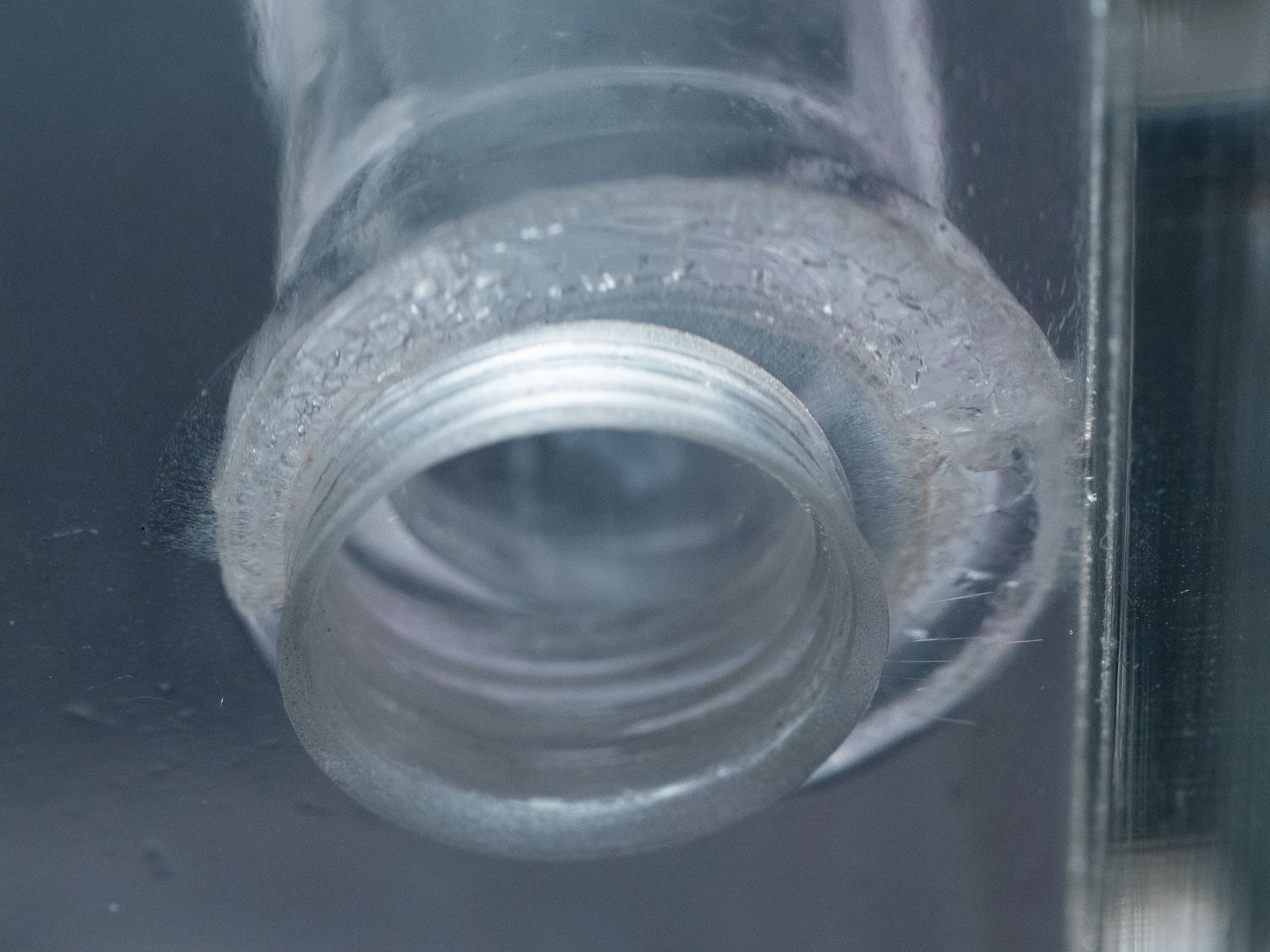 Tu peux avoir des microfissures de surface, ce n'est pas plus grave qu'une rayure tant qu'elles ne vont pas en profondeur. J'en ai à chaque endroit où un raccord a été vissé (sans bourriner pourtant) - attention l'objectif macro exagère beaucoup, on les voit à peine à l'œil nu :