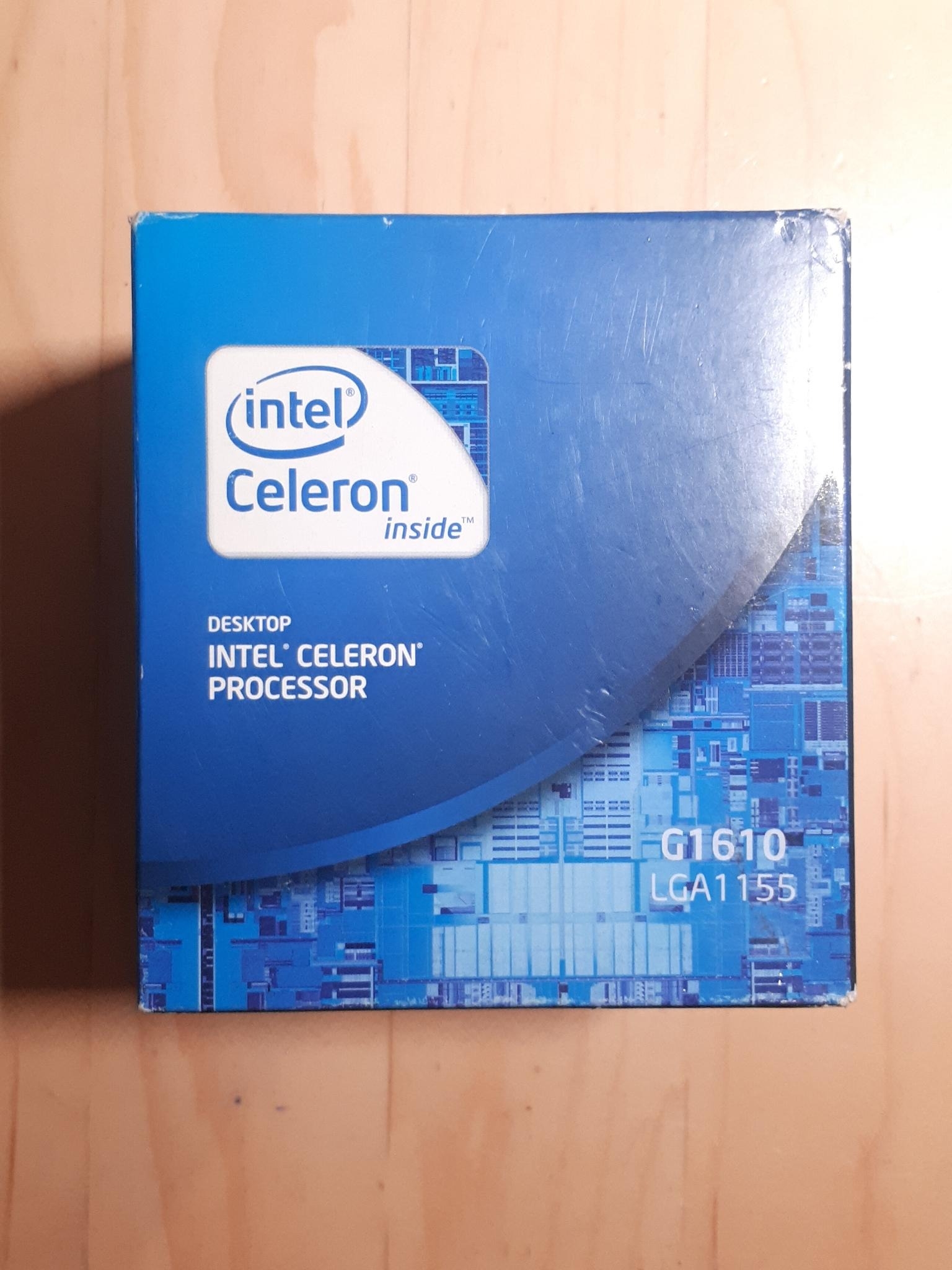 Intel Celeron G1610 socket 1155 (sans ventirad) Etat: neuf, la boite a été ouverte pour prendre le ventirad, mais le processeur n'a jamais été utilisé Prix: 10€