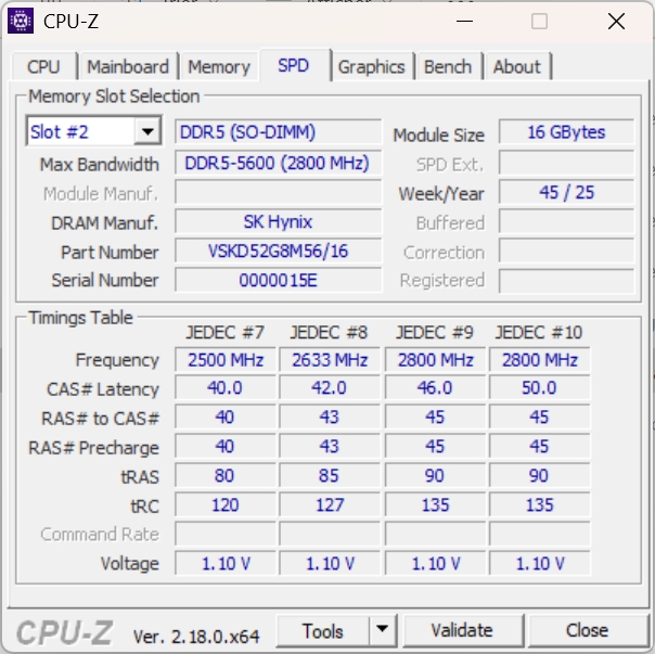 - une barrette de mémoire 16 Go SODIMM DDR5 5600Mhz