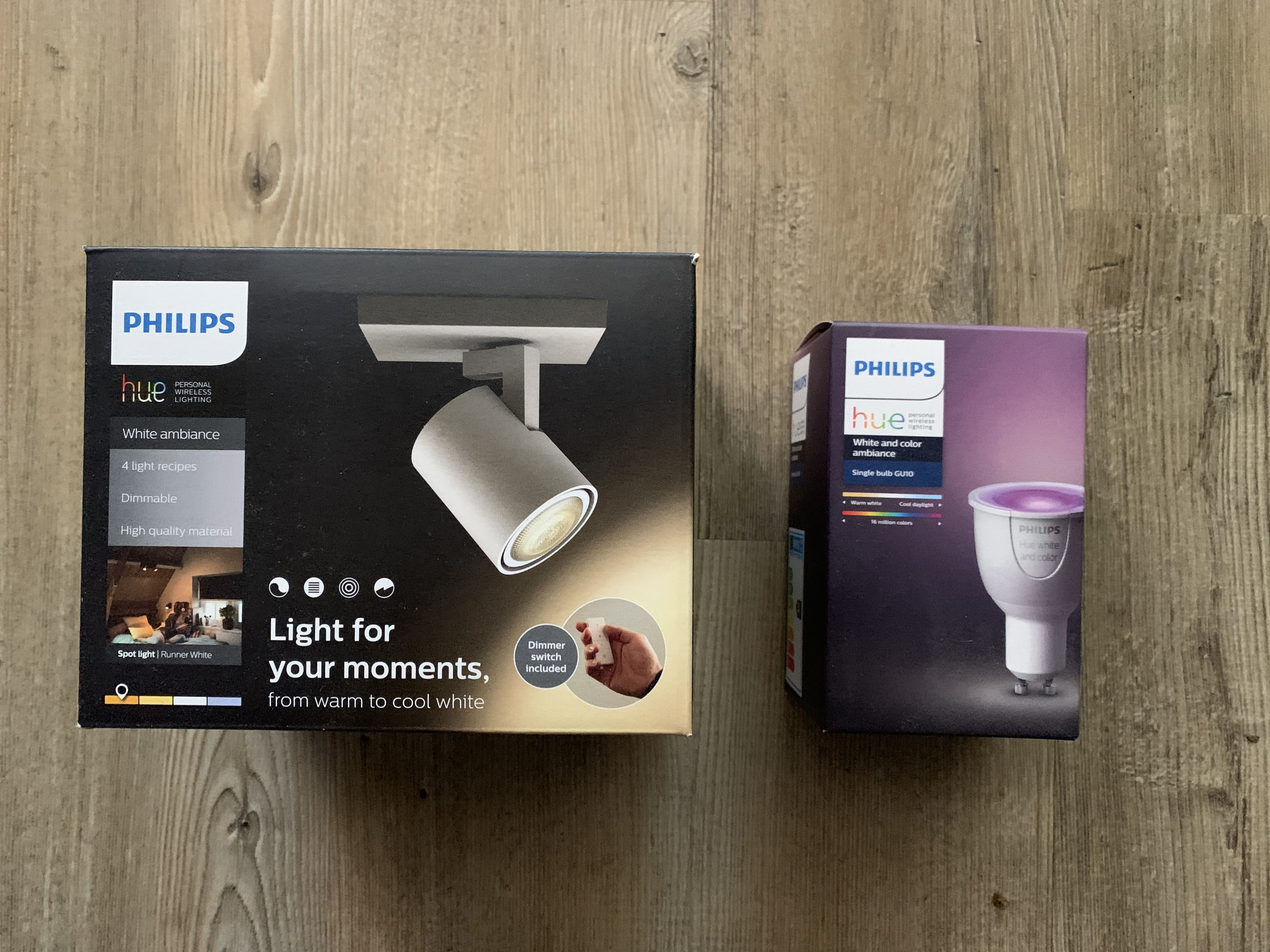 Un lot: Philips hue spot light blanc + un philipsGU10 color. Le tout est neuf, jamais ouvert.Prix : 40 euros le lot (FDP In)