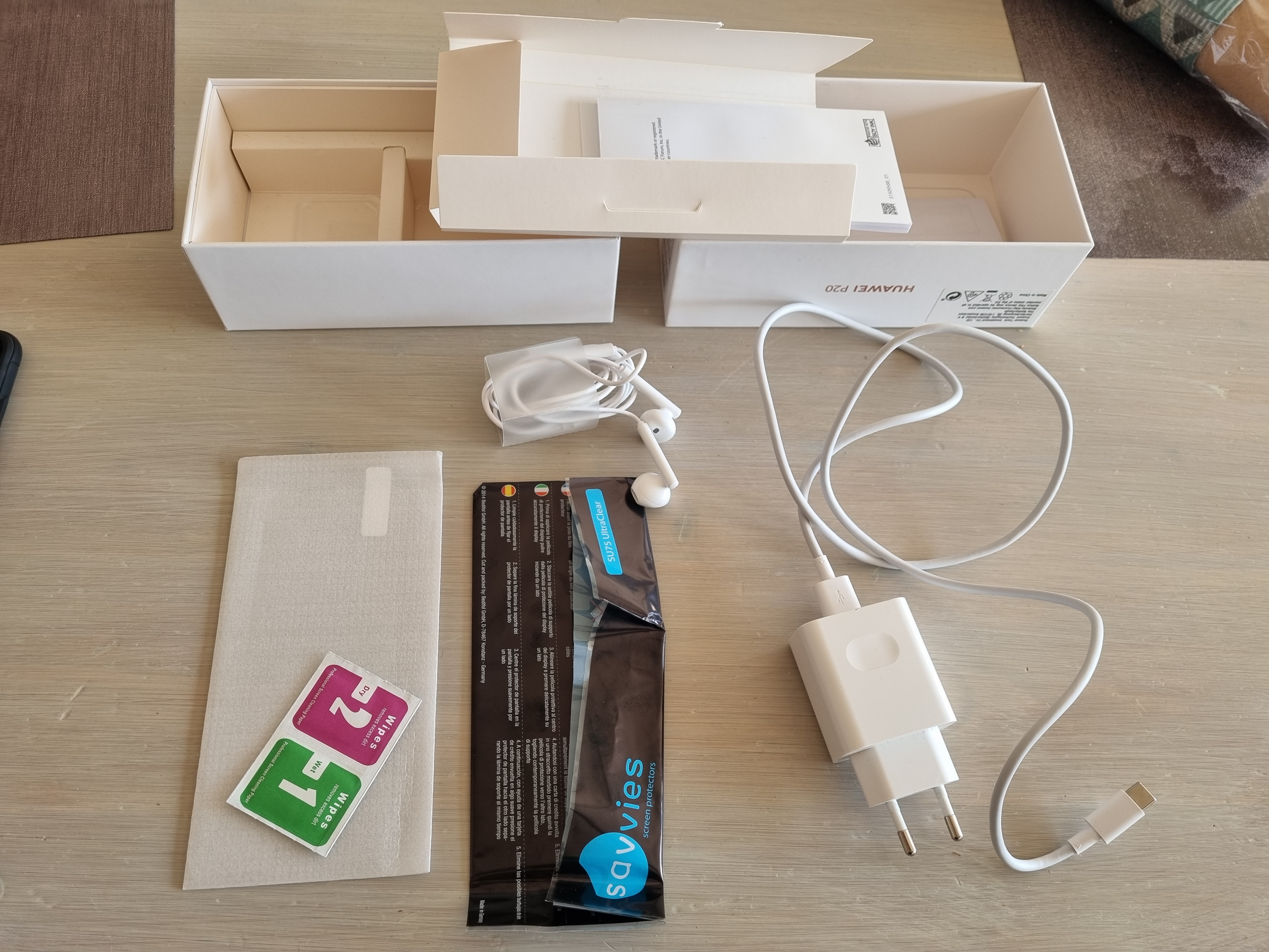 Je vends donc mon P20 en très bon état (écran et verre arrière toujours protégé). Il est vendu avec facture à mon nom, 2 coque (celle d'origine et une spigen non utilisé pour les 2), j'en avait une autre que je vais jeter car elle est marquée. Il y a le chargeur secteur et son câble (Neuf), les écouteurs (neuf), 1 verre trempé, et 2/3 film de protection arrière (Pour le moment j'ai tout enlevé pour prendre les photos.