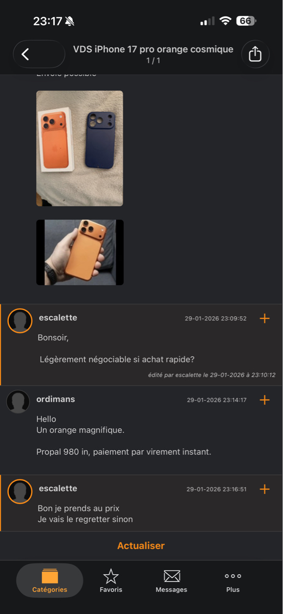 Je vends mon iPhone 17 Pro orange de 256go acheté sur Amazon 1329€ il y a 2 mois !