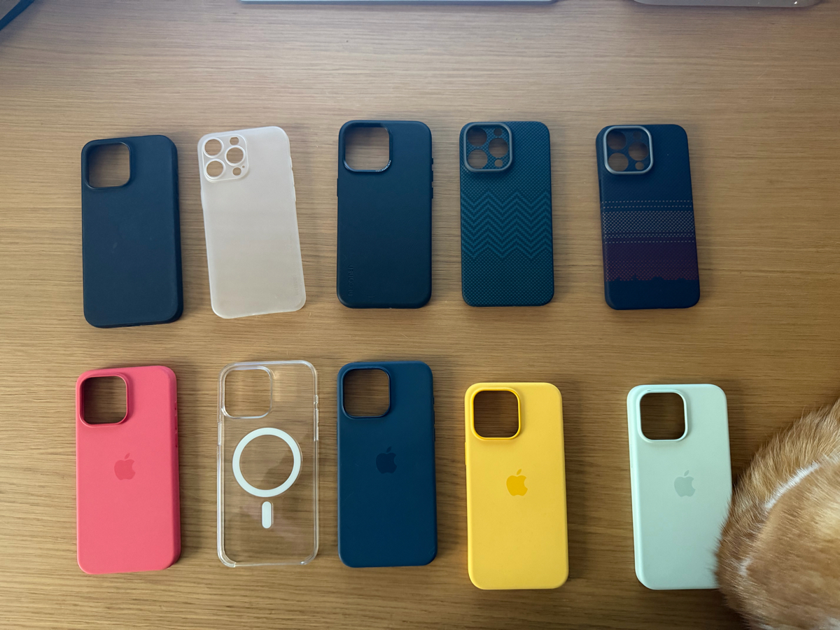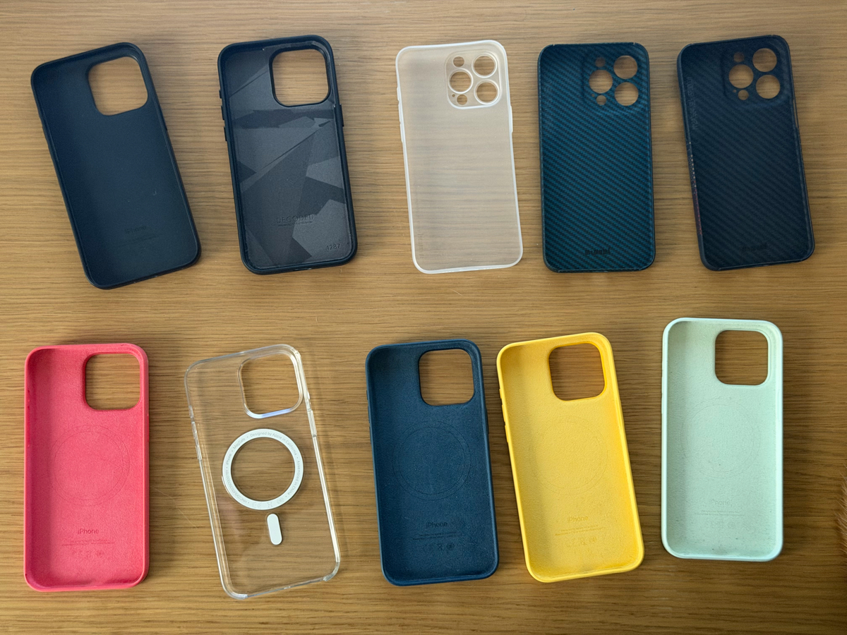 Suite au vol de mon iPhone 15 Pro Max, je mets en vente de nombreuses coques d marqué différentes : Apple, Pitaka, Memumi, etc. Dont 4 coques Apple Silicone, une coque Apple Finewoven noire, Une coque Apple transparente, Deux coques en fibre de carbone Memumi.