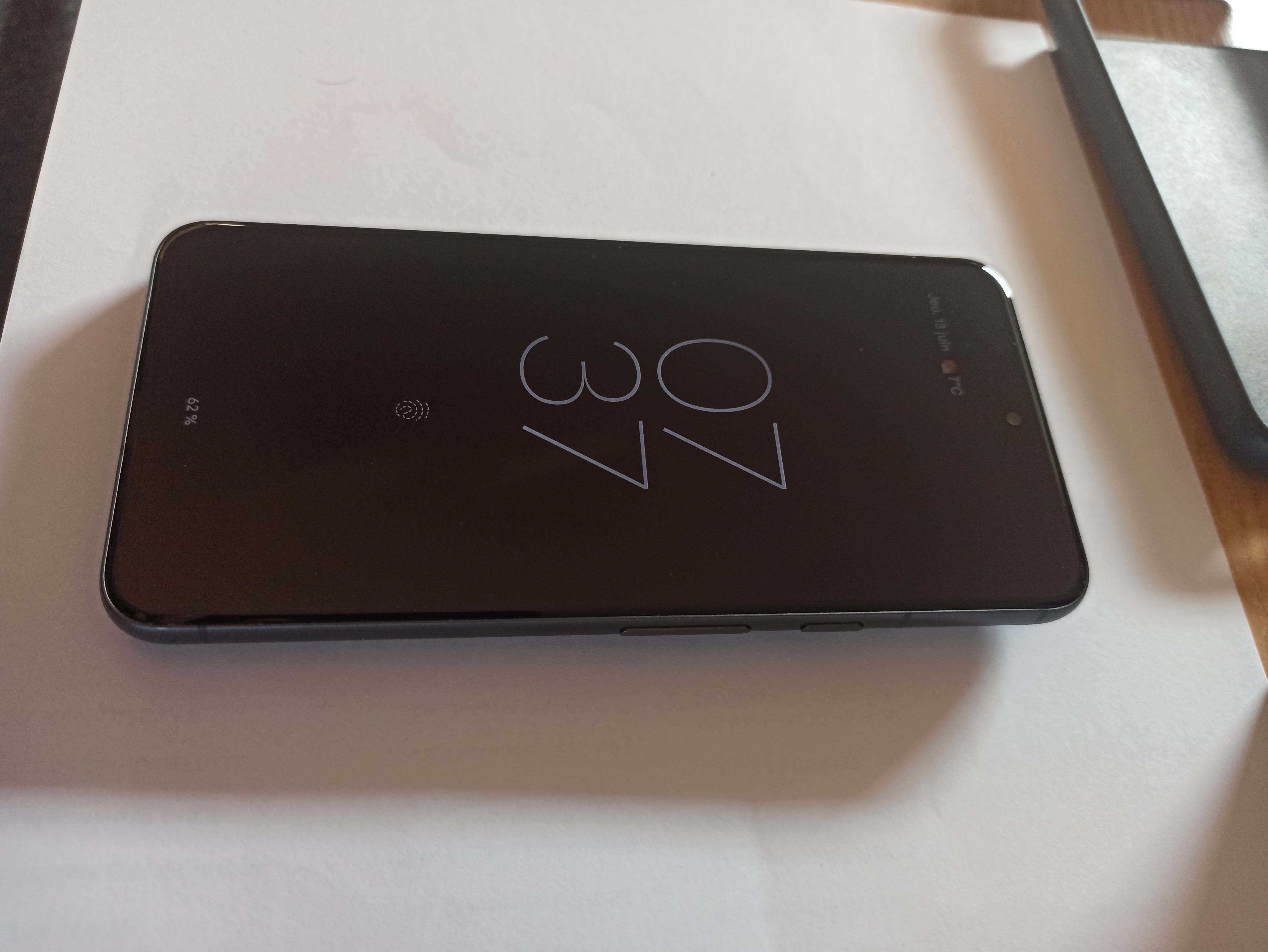 Il est noir, toujours protégé par une coque et un film sur l'écran.
