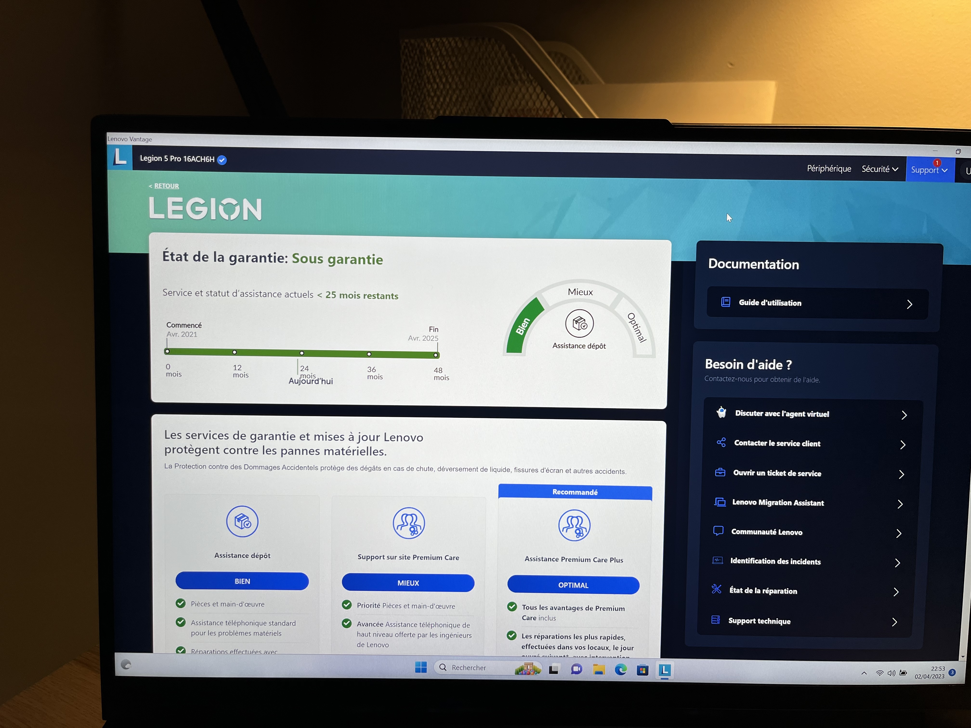 Voulant repasser sur une tour, je souhaite me séparer de mon Legion 5 Pro (16ACH6H) qui m'a assuré un excellent service durant un bon moment.