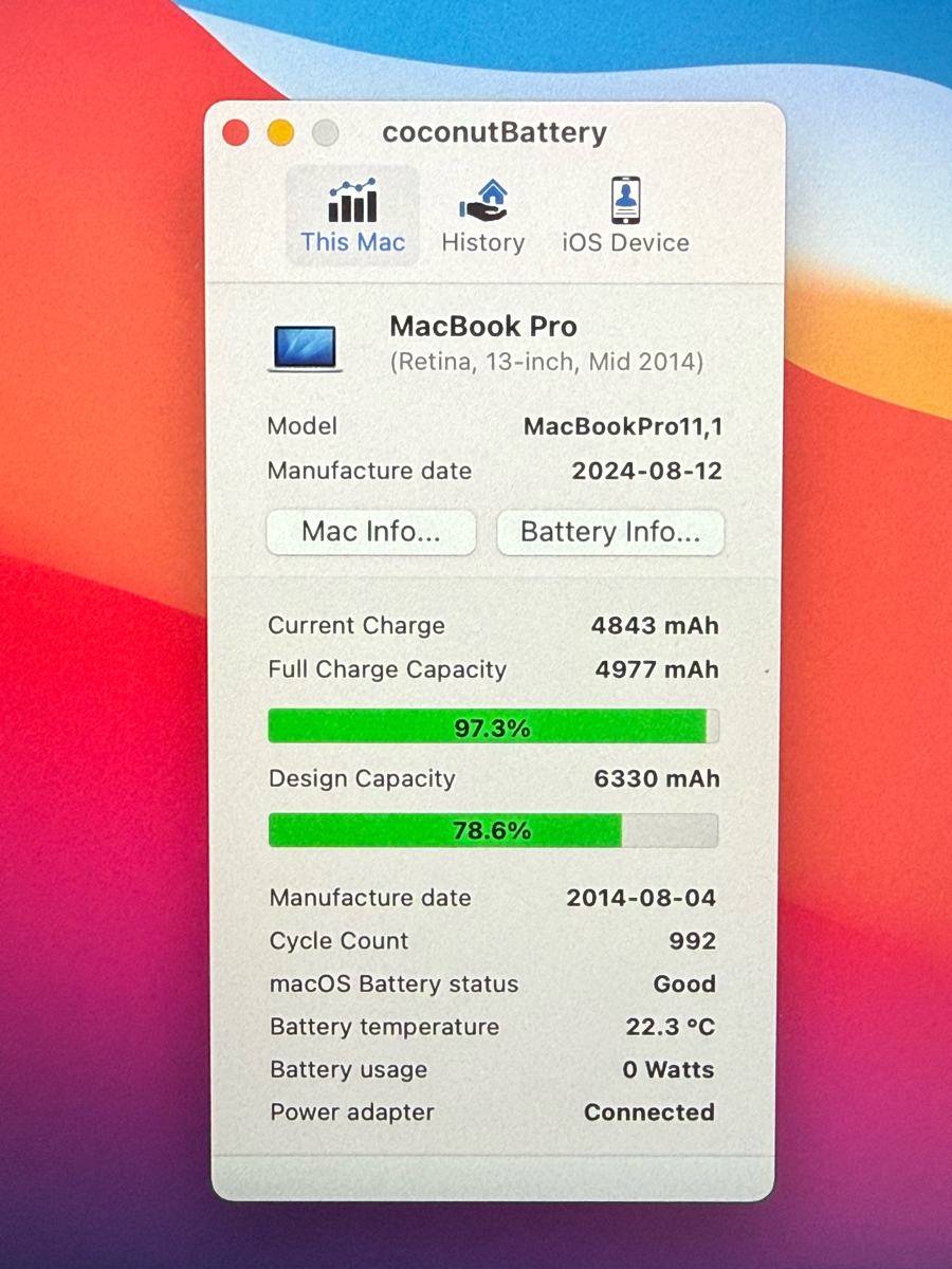 Voici une capture écran de Coconut Battery :