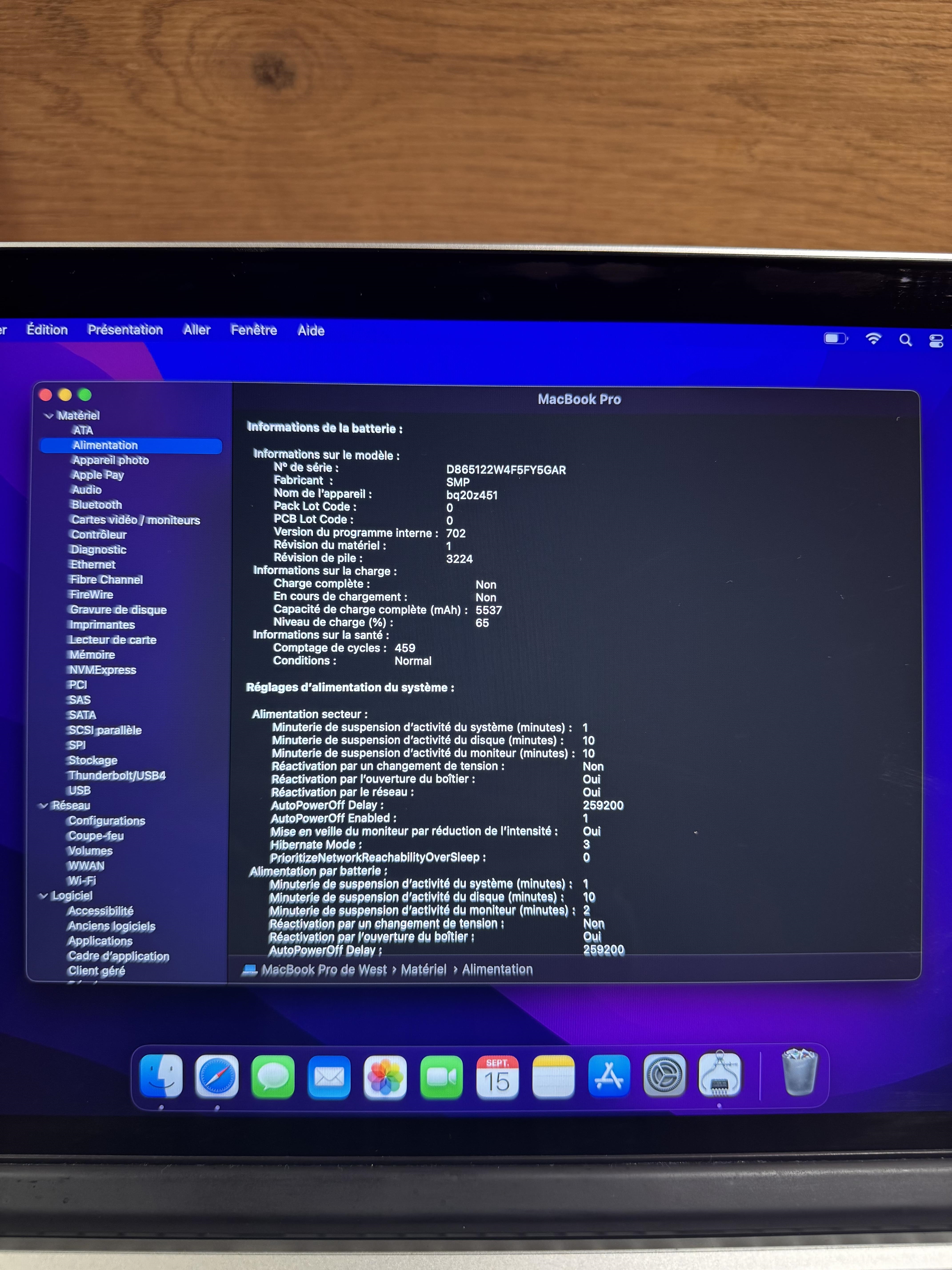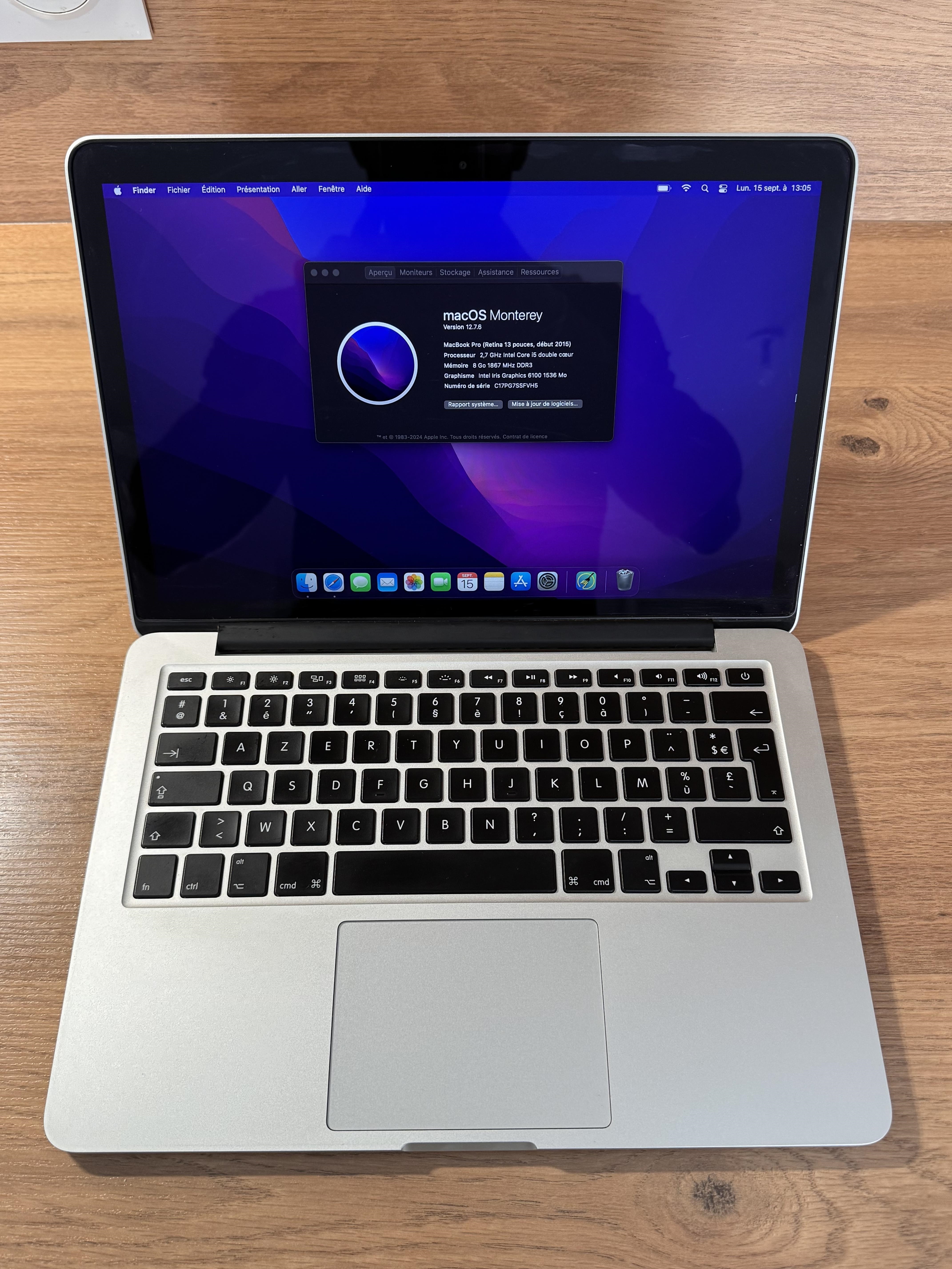 Je vends ce MacBook Pro 13” Retina – début 2015 (A1502 / EMC 2835).