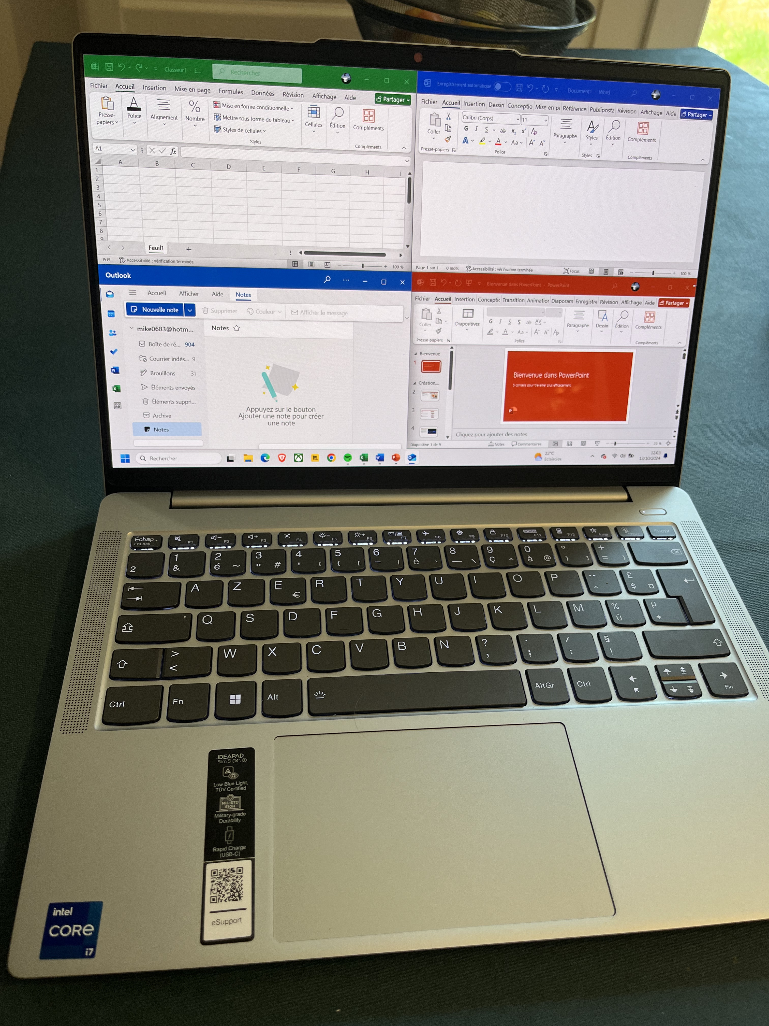 Windows 11 pro, Office 2021 (Word, Excel, Powerpoint, Outlook) fournis.