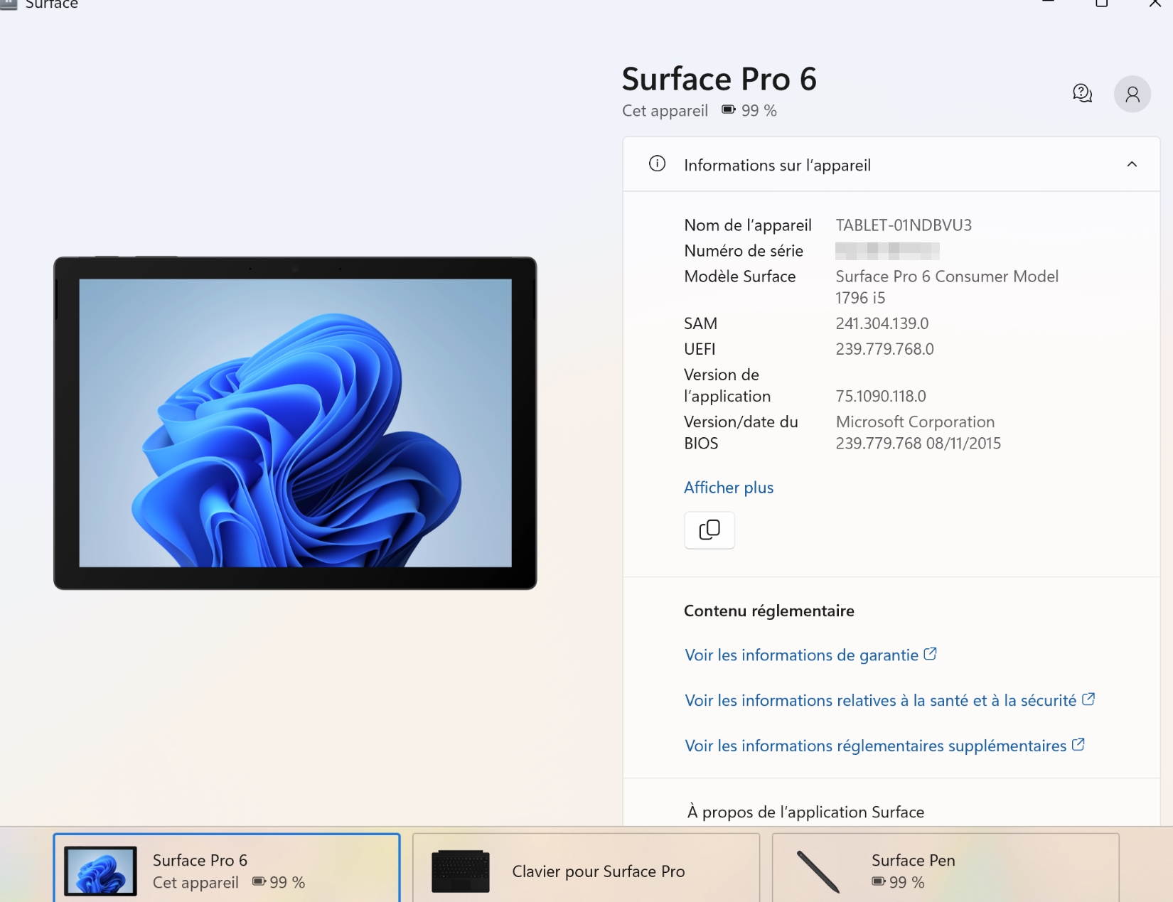 Je mets en vente ma Surface Pro 6 i5 8250U 8 Go 256 Go.