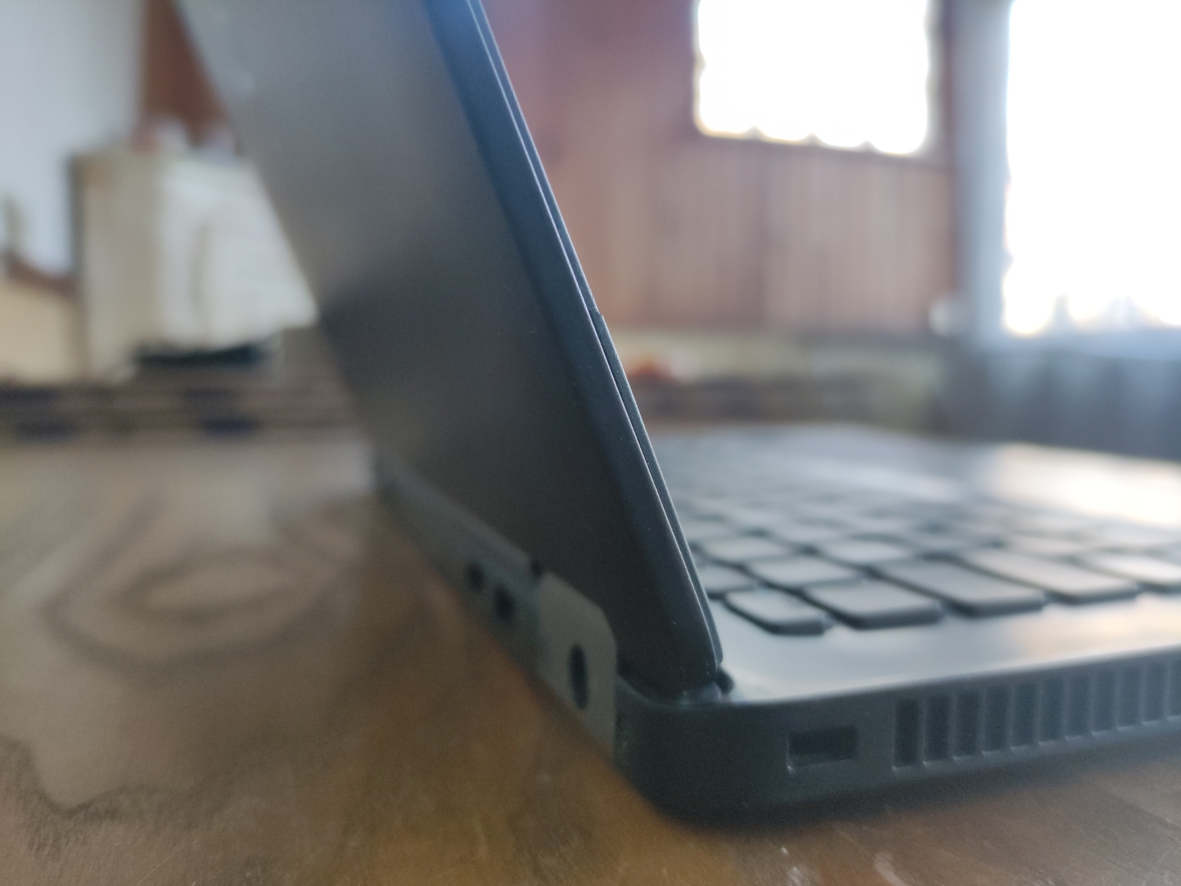 - une petite fissure est présente en bas à gauche de la plasturgie de l'écran (voir photo), cela n'impacte en rien l'écran ou la charnière, c'est vraiment très superficielle.