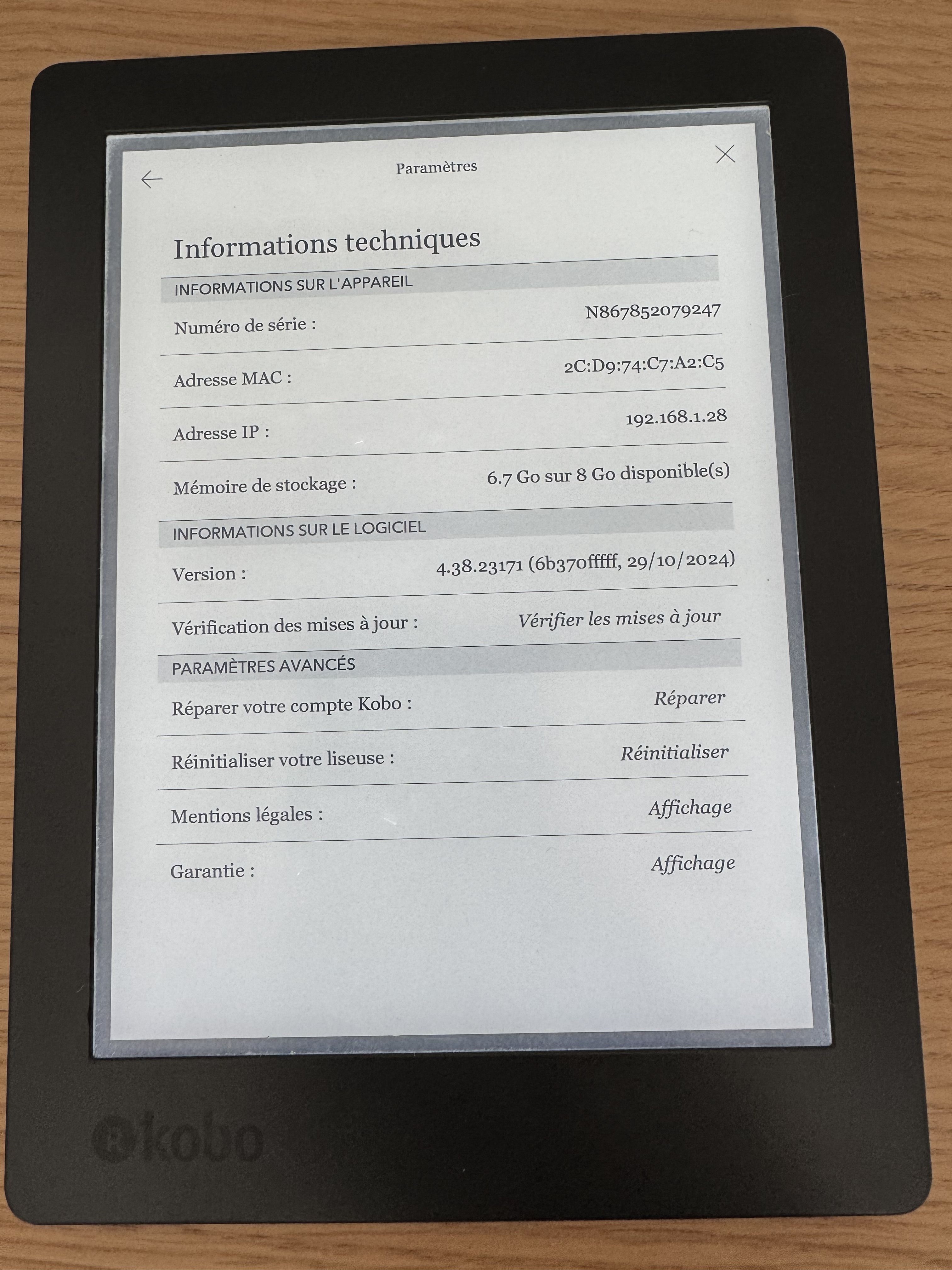 Vends une liseuse Kobo Aura H2o Edition 2, capacité 8Go