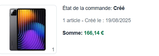 Tablette achetée le 26/03/2025 sur le site de Xiaomi je l'ai eu en bundle avec l'achat d'un Xiaomi 15