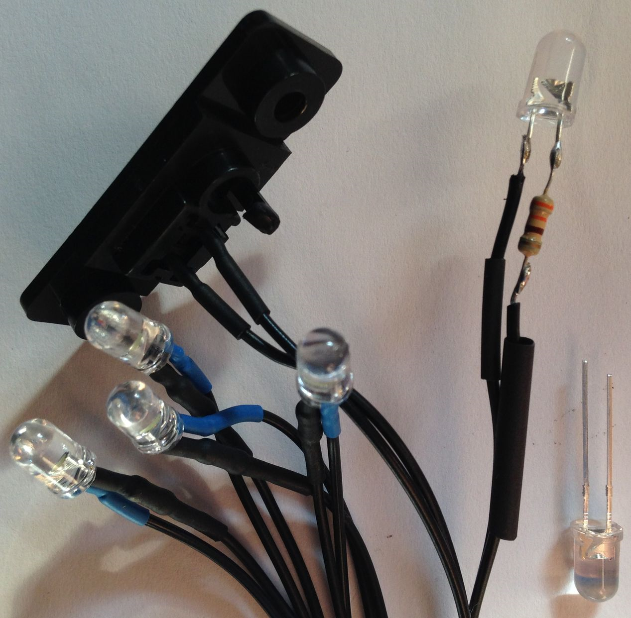 J'ai mesuré les LEDs existantes pour choisir des rouges qui rentrent (5mm de diamètre), mais concernant les caractéristiques techniques à respecter je suis dans le flou : rien sur les LEDs existantes.