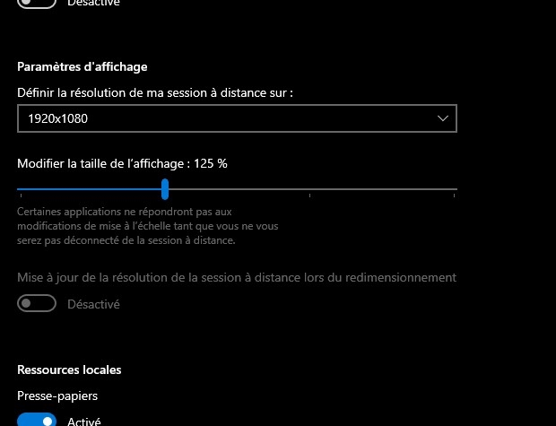 Cependant quand je le mets en 1920x1080 dans les réglages Windows (pour afficher en plus gros sur un bureau à distance, il ne prends pas en compte le grossissement Windows ) ca affiche une fenêtre réduite, correspondant à du 1080p mais le tout entouré d’énormes bordures noires.
