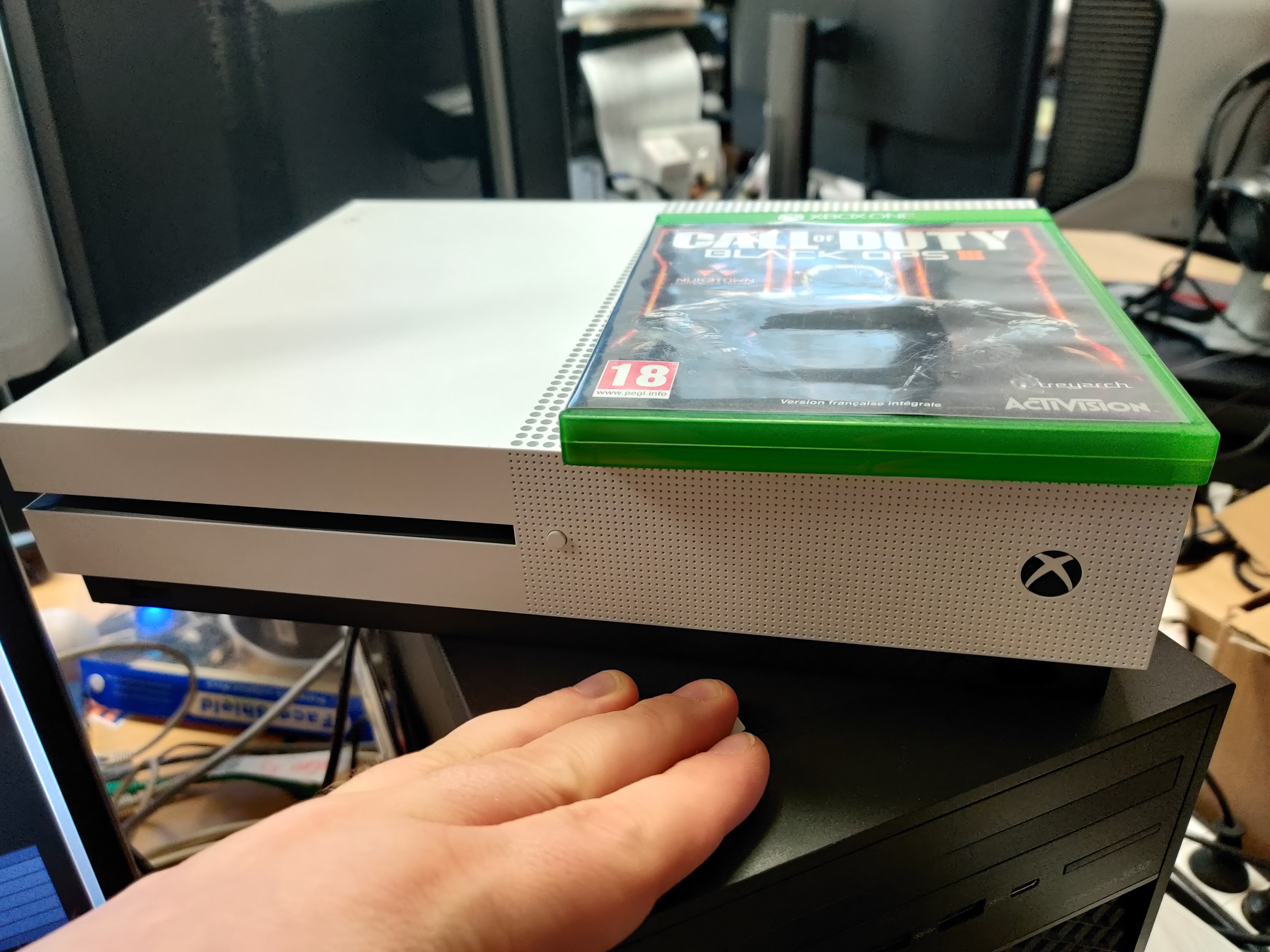 J'ai une Xbox one S avec une manette noire. La console a très peu tournée. Toujours avec un SSD donc le HDD (que j'ai remis dans la console) est quasi neuf et n'a que quelques heures au compteur.