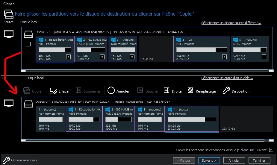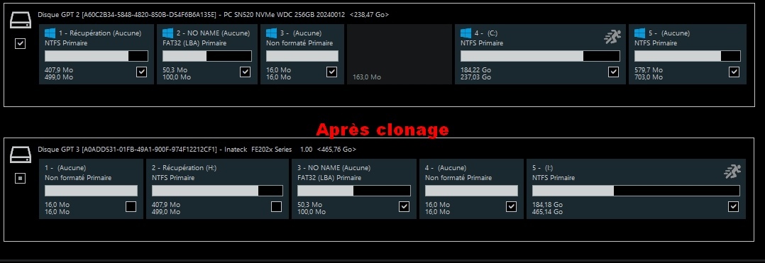 une partition dans le disque d'origine a disparu dans le clonage ? ....et quelques autres détails ?...