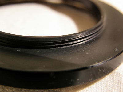 Je n'avais pas remarqué qu'au bout de l'objectif du sp 550, à l'intérieur, il y a un pas de vis. L'adaptateur se visse donc à cet endroit, juste au bout de l'objectif, et permet l'utilisation de filtres 52mm, ou de n'importe quel diamètre en utilisant une step up ring.