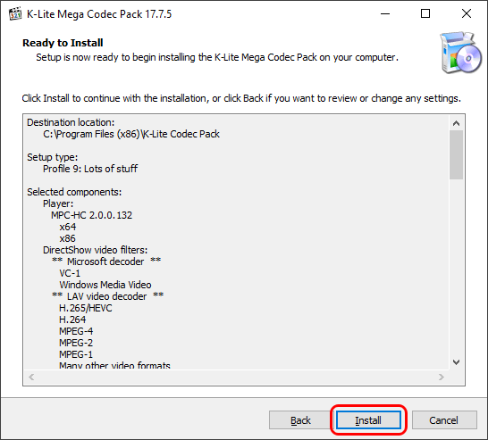 INSTALLATION DE K-LITE MEGA CODEC PACK