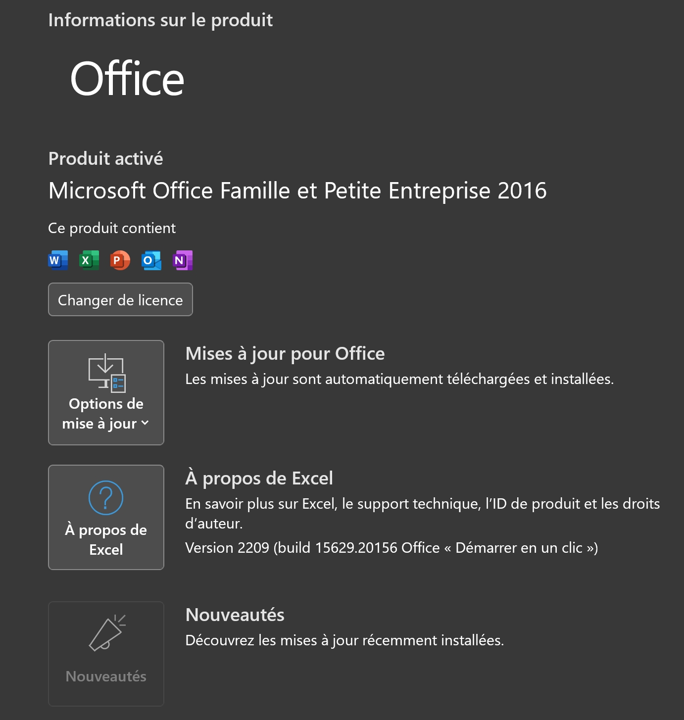 Tu as juste la dernière version à jour d'Office 2016 qui est encore supportée jusqu'en 2025.