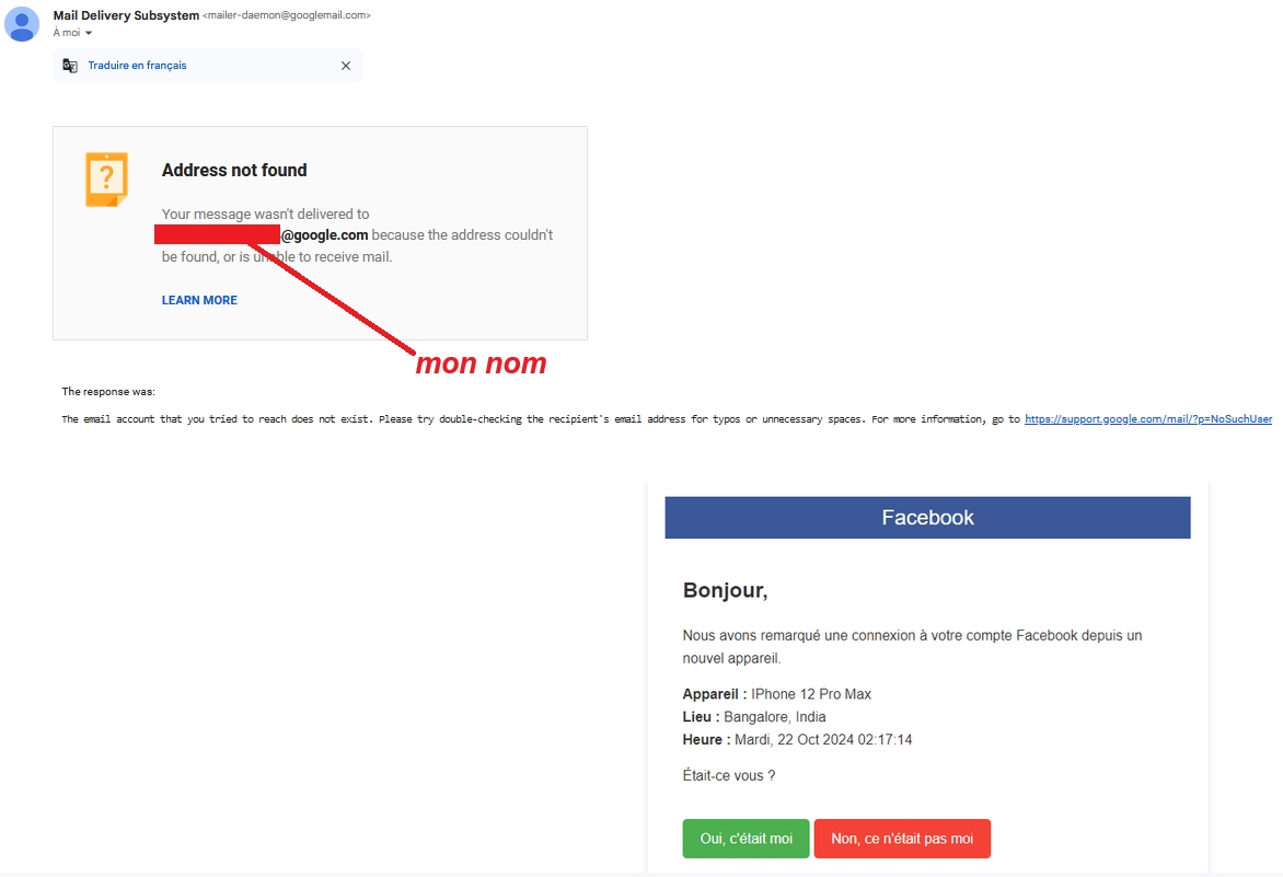 Mon adresse est truc.machin96@gmail.com. Et on me dit que le message envoyé à truc.machin96@google.com n'a pas été délivré.