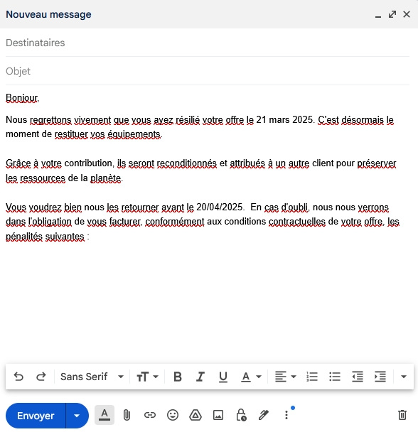 Je mets une capture d'écran d'un mail que je viens d'écrire en ayant coché la case.