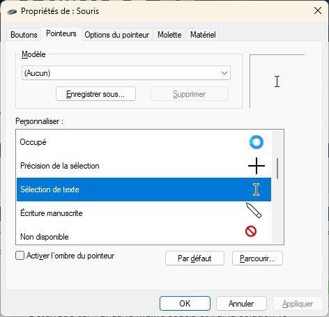 Je suis passé sous Win11 sur mon nouveau pc, et je rencontre un problème au niveau du pointeur "texte" de la souris.
