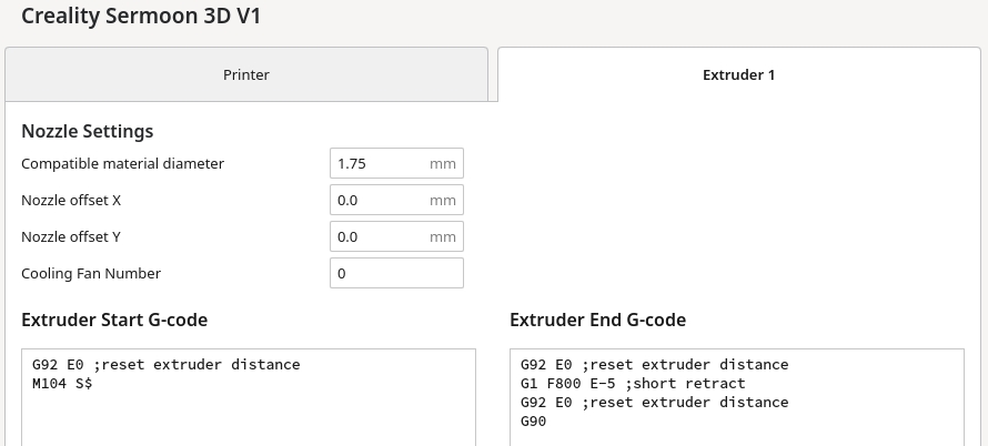 Inconnue sous Cura, il faudra récupérer les settings depuis le slicer Creality (ironiquement basé sur Cura) ou les Internets (voir plus bas).Gcode et réglages pour Cura (déprécié) :