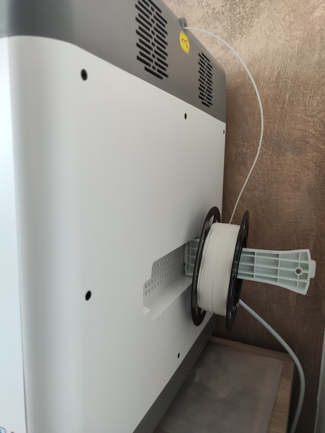 Le support intégré à l'imprimante a tenu la grosse bobine de 2.3kg sans problème d'entrainement du filament, néanmoins la prochaine fois je lui fabriquerais un support dédié car on est vraiment à la limite.