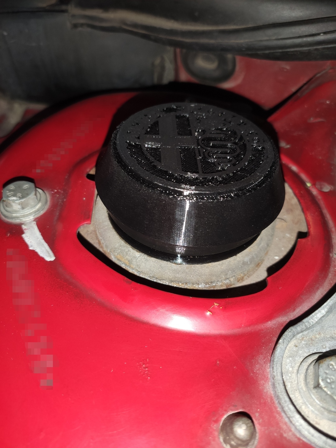 Première impression utilitaire, en TPU 95A (Amazon Basics), des protections de coupelles d'amortisseurs qui après 28 ans de service n'étaient plus tellement en forme :