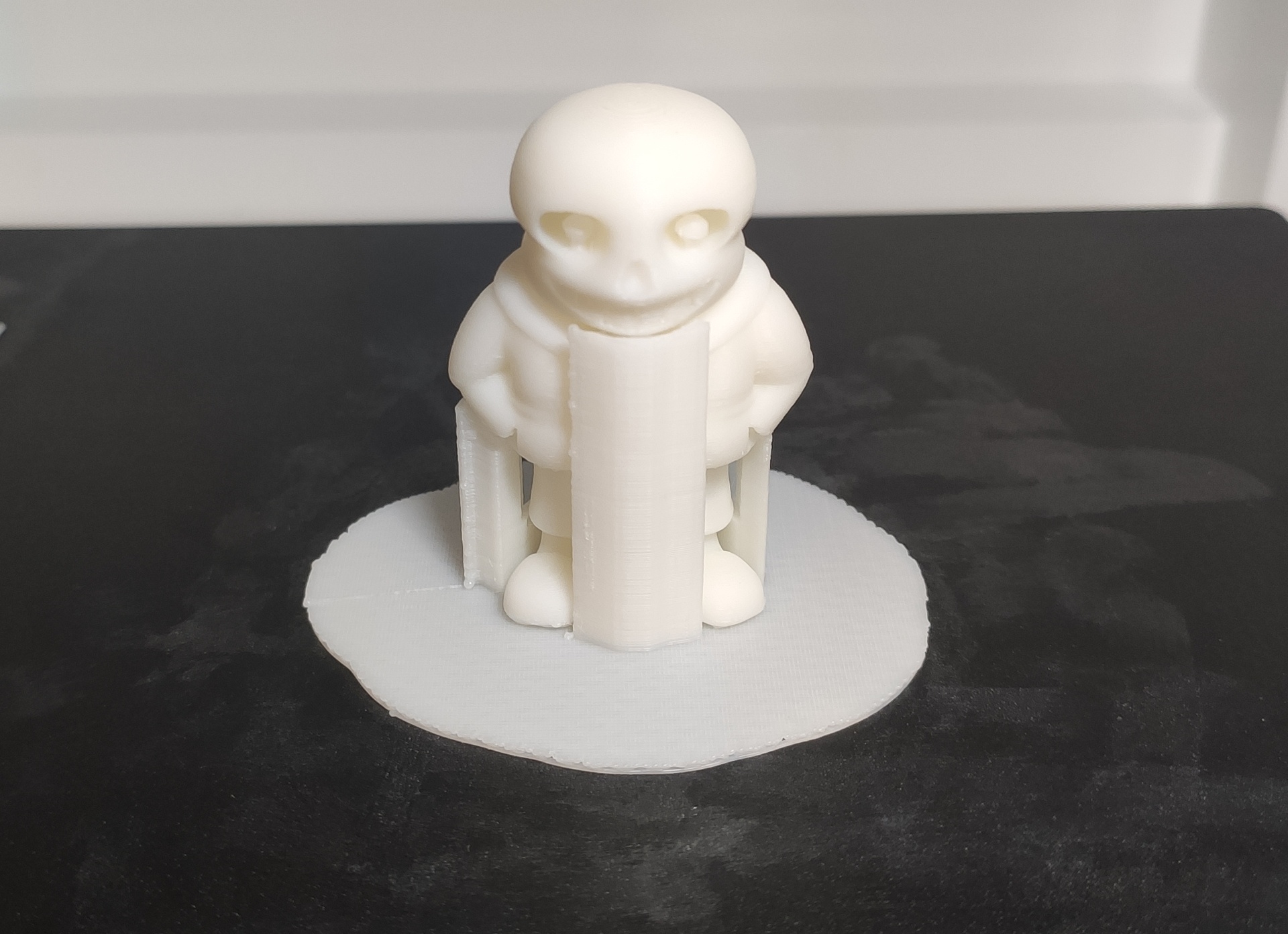 Couches de 0.20mm, 40mm/s, température de buse à 220°C, plateau à 50°C, aucun problème si ce n'est un ébavurage approximatif de la petite fantaisie que je me suis permise (flemme) ![]()