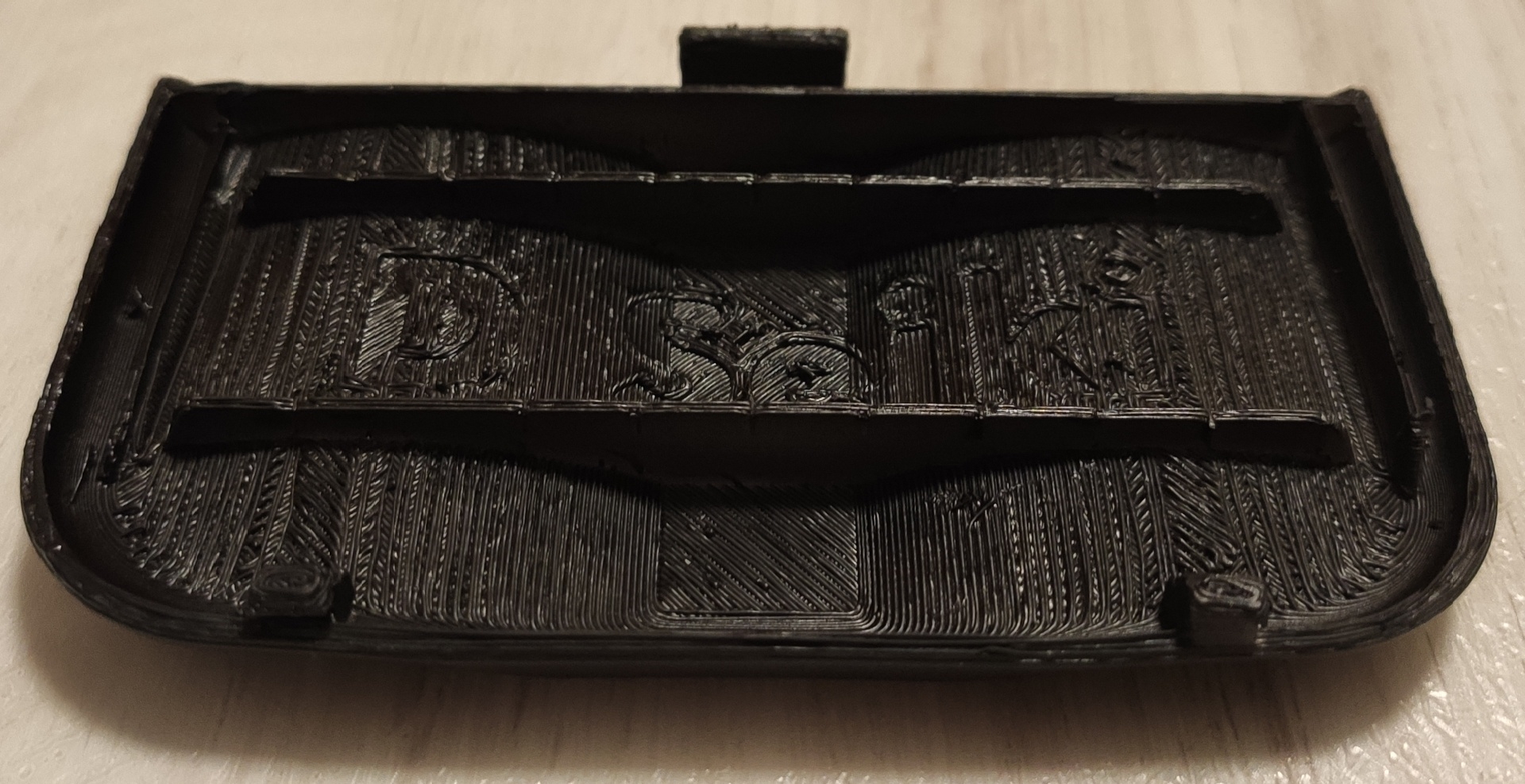 Premier print d'une "large" pièce en ABS (pour la taille de mon plateau, j'entends), un cache piles pour console "portable" PC-Engine GT :